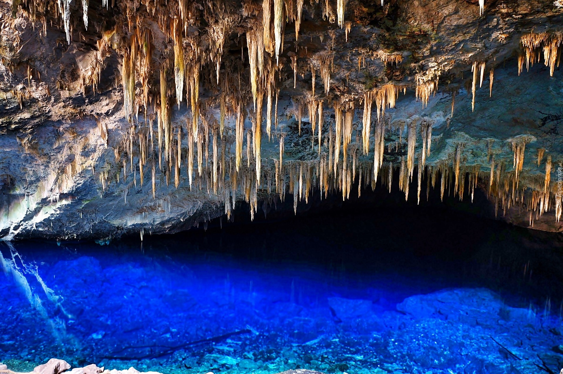 Edytor tapety: Bonito, Jaskinia, Blue, Lake, Cave, Jezioro, Stalaktyty