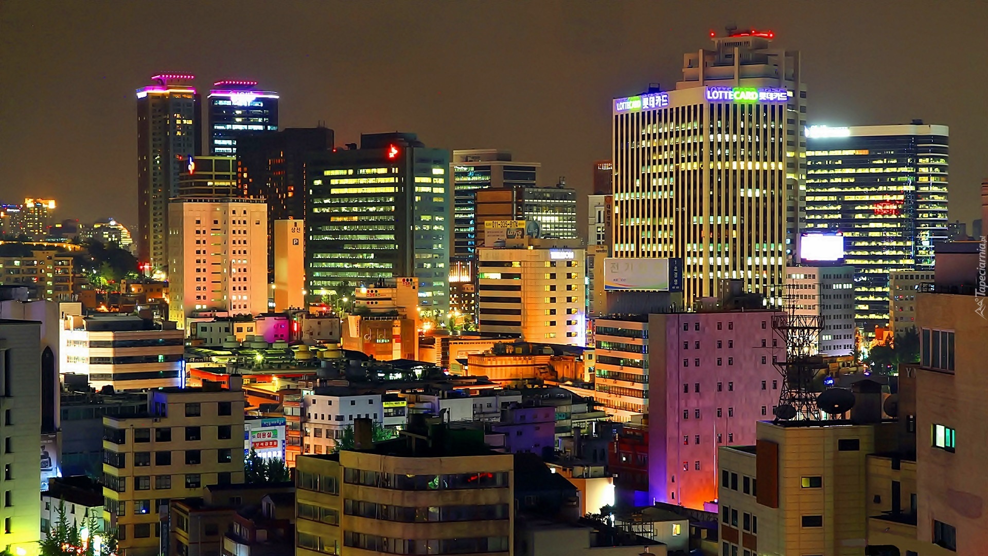 Edytor tapety: Seul, Nocą, Drapacze, Chmur