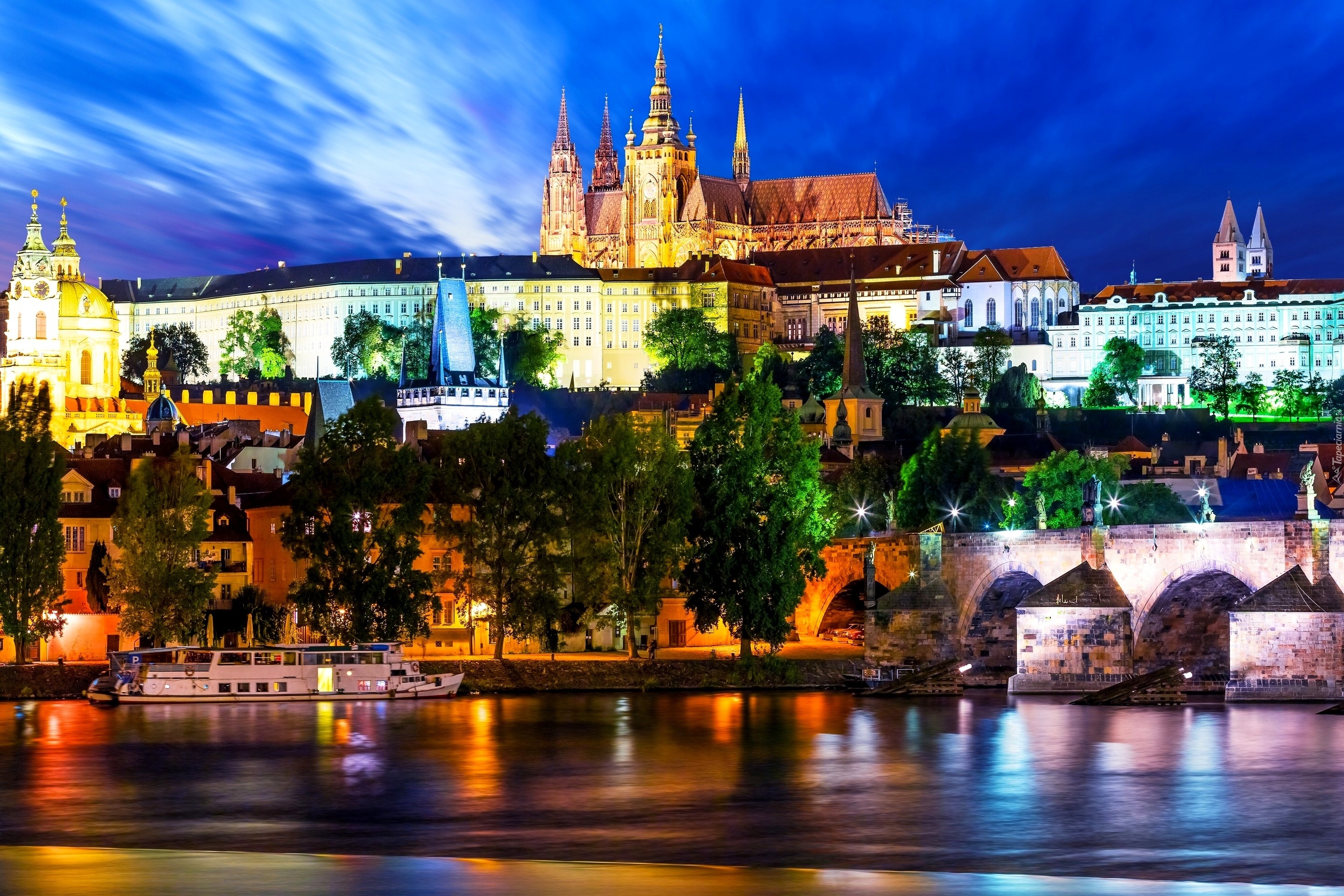 Edytor tapety: Oświetlone, Miasto, Praga, Czechy