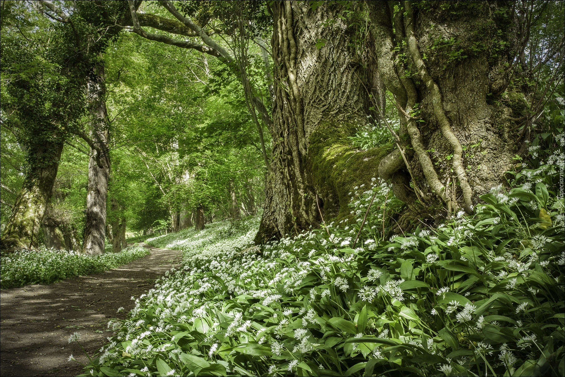 Edytor tapety: Las, Dróżka, Leśne, Kwiaty
