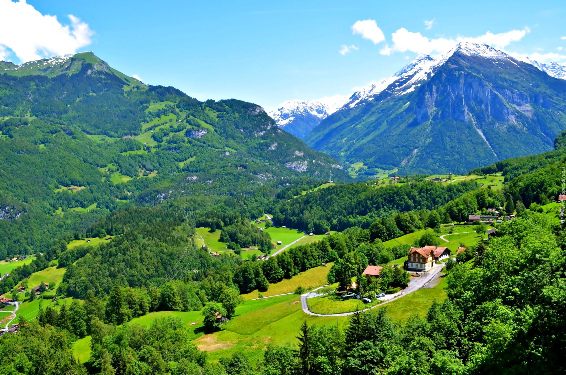 Edytor tapety: Alpy, Lasy, Łąki, Domostwa