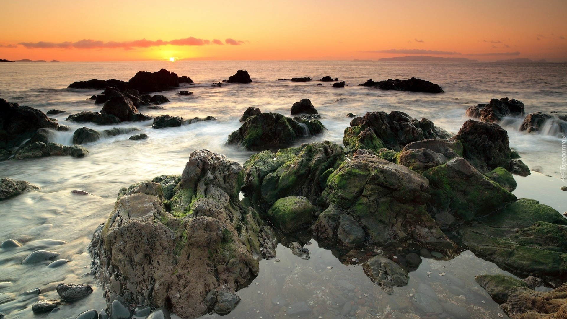 Edytor tapety: Morze, Skały, Zachód Słońca