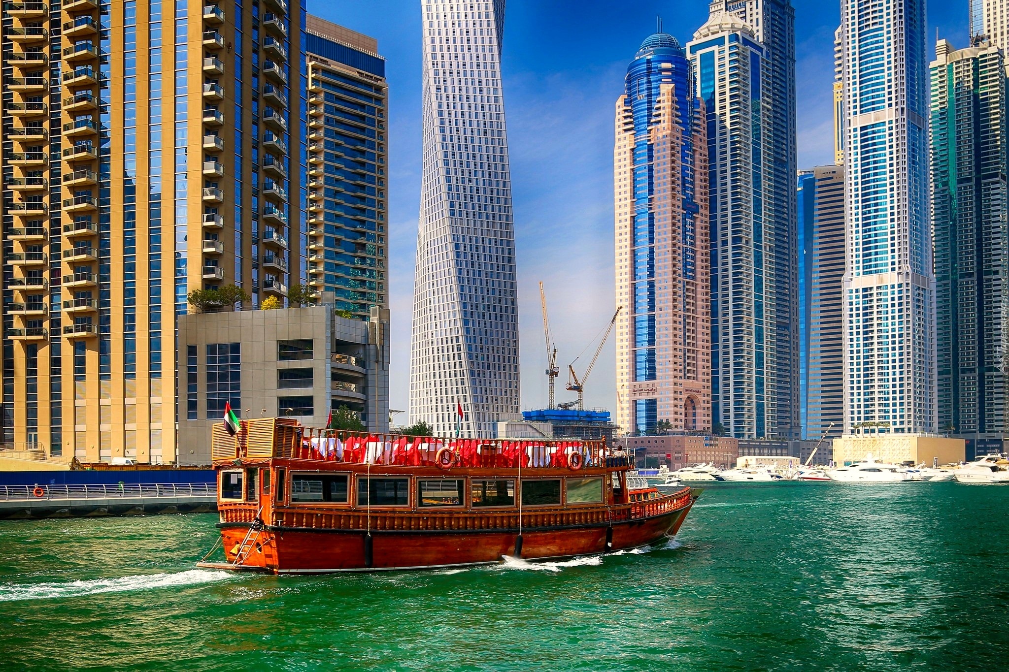 Edytor tapety: Drapacze Chmur, Miasto, Rzeka, Statek
