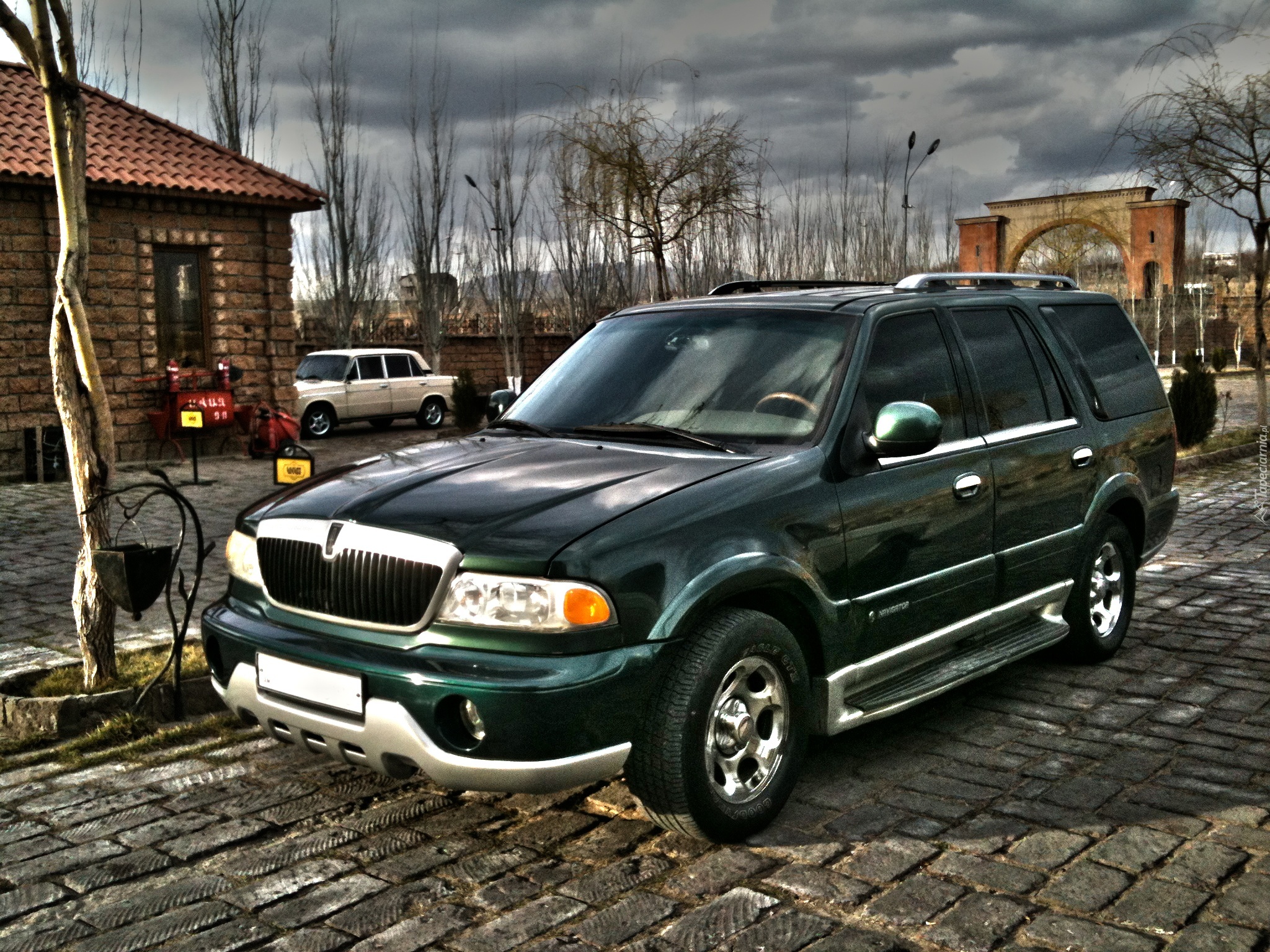 Edytor tapety: Lincoln, Navigator, Budynek, Drzewa