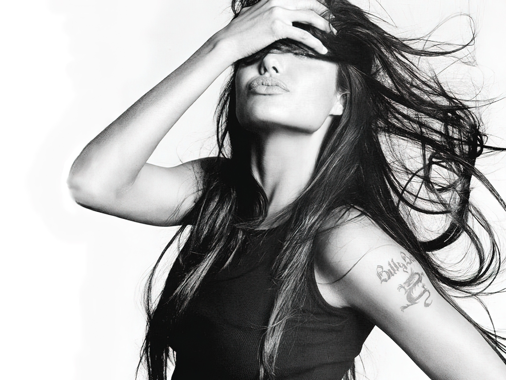 Edytor tapety: Angelina Jolie, czarny top, tatuaż
