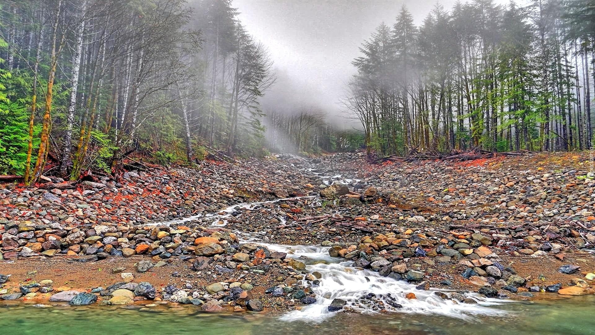 Edytor tapety: Las, Kamienie, Mgła