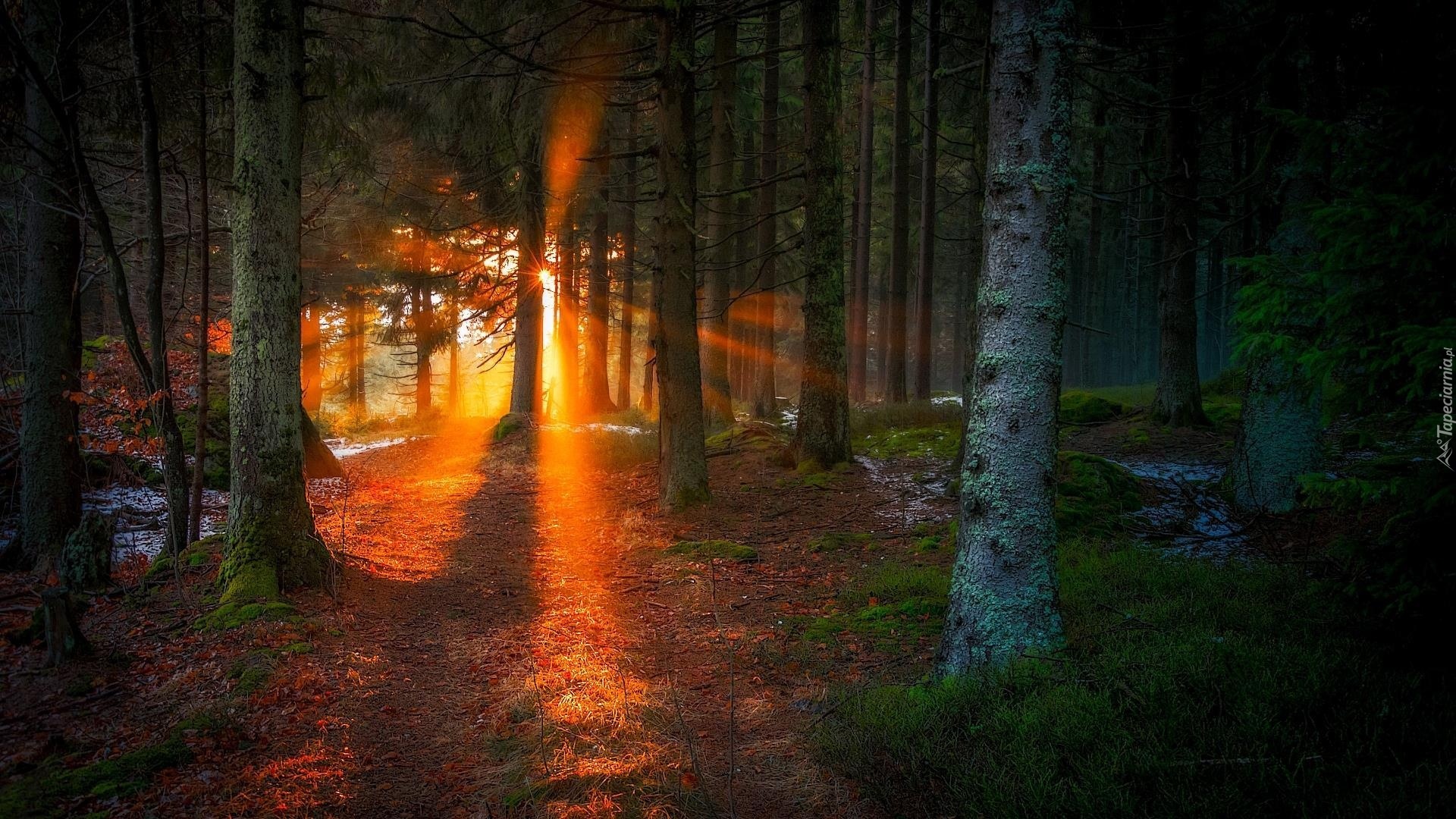 Edytor tapety: Zachód, Słońca, Las