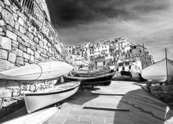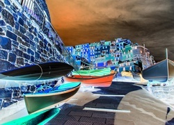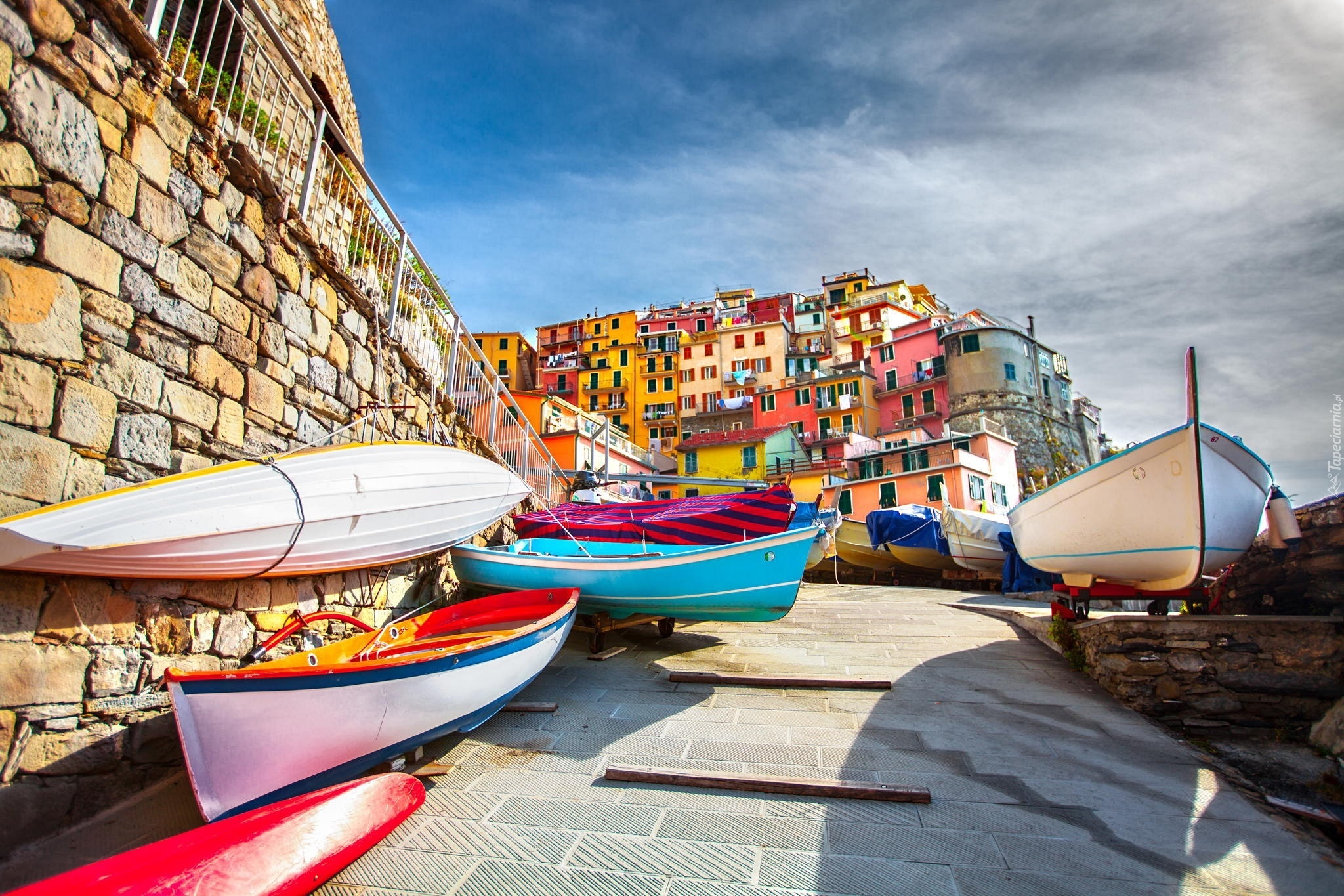 Edytor tapety: Łódki, Domy, Manarola, Włochy, Wybrzeże Liguryjskie