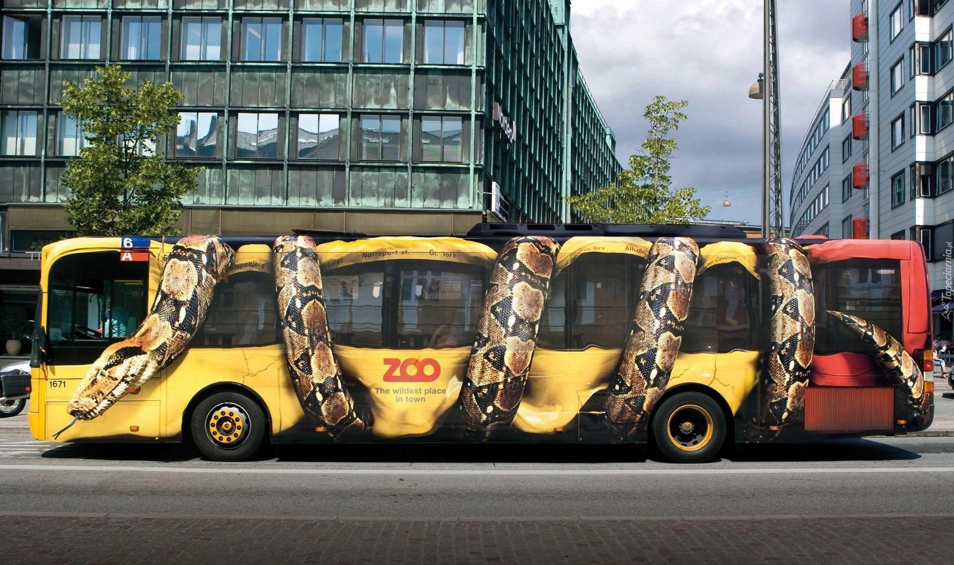 Edytor tapety: Autobus, Ulica, Drzewa, Wąż