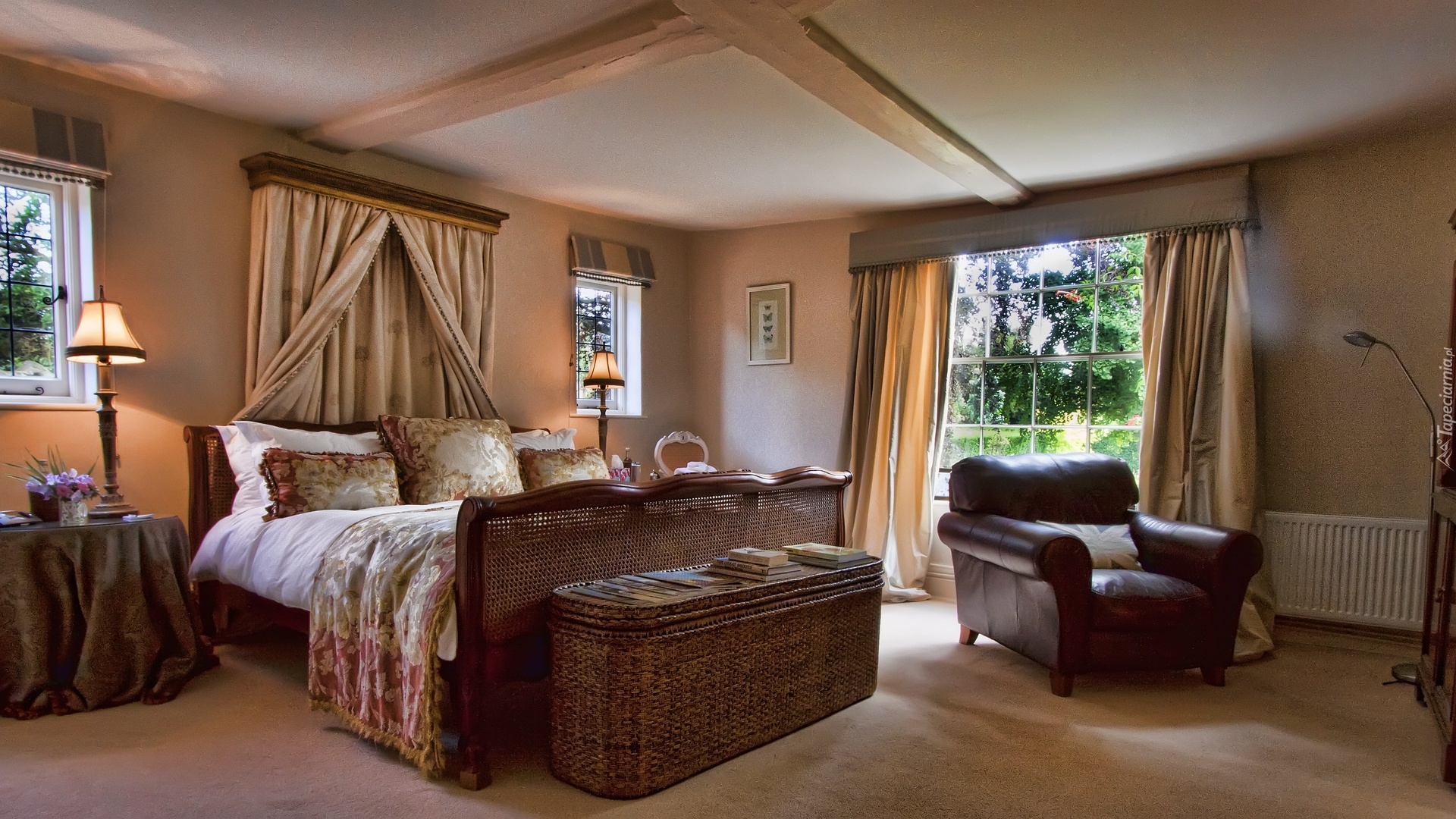 Edytor tapety: Sypialnia, Łóżko, Fotel, Lampki