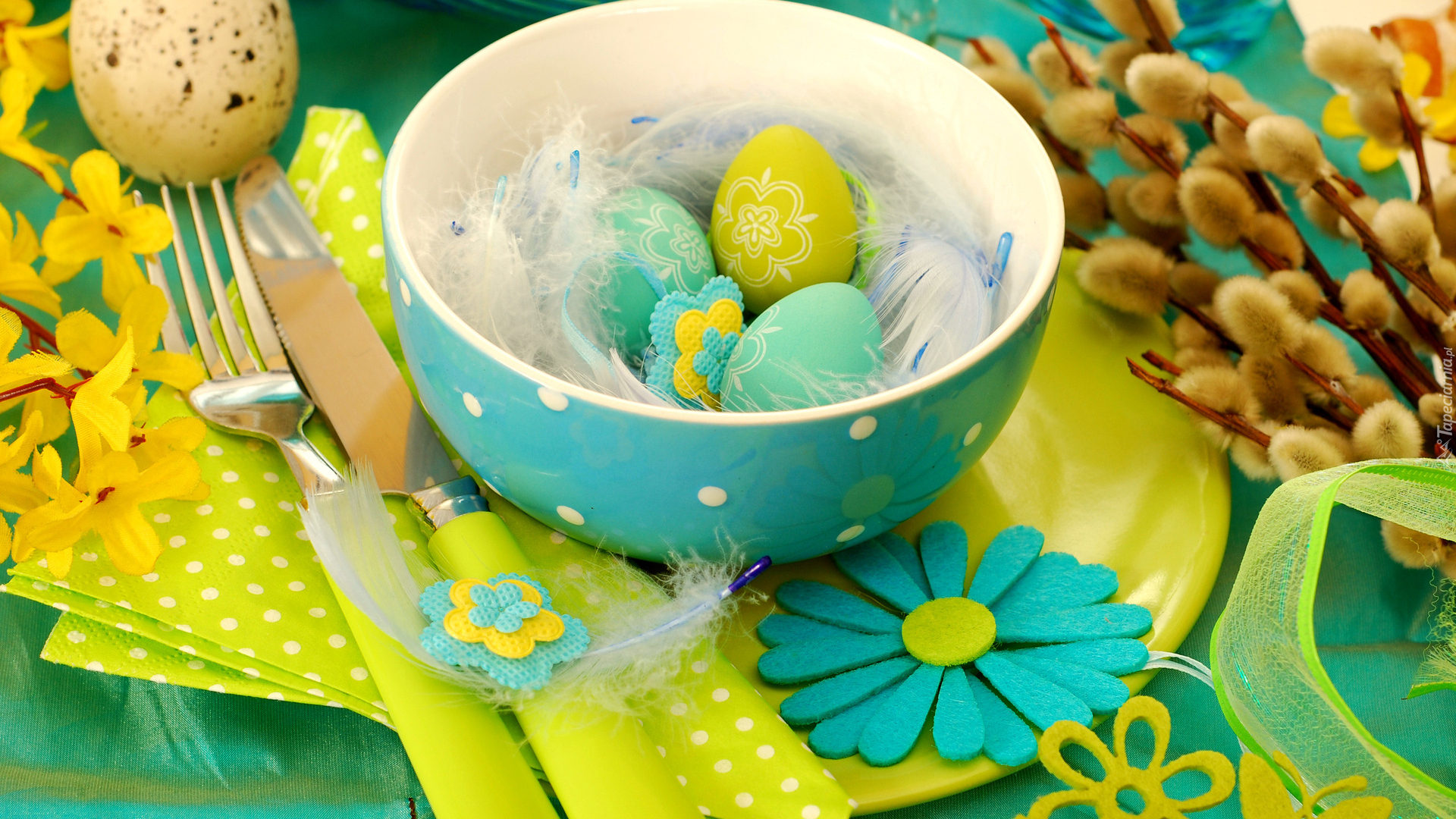 Edytor tapety: Wielkanoc, Nakrycie, Stołu, Kolorowe, Jajka, Bazie