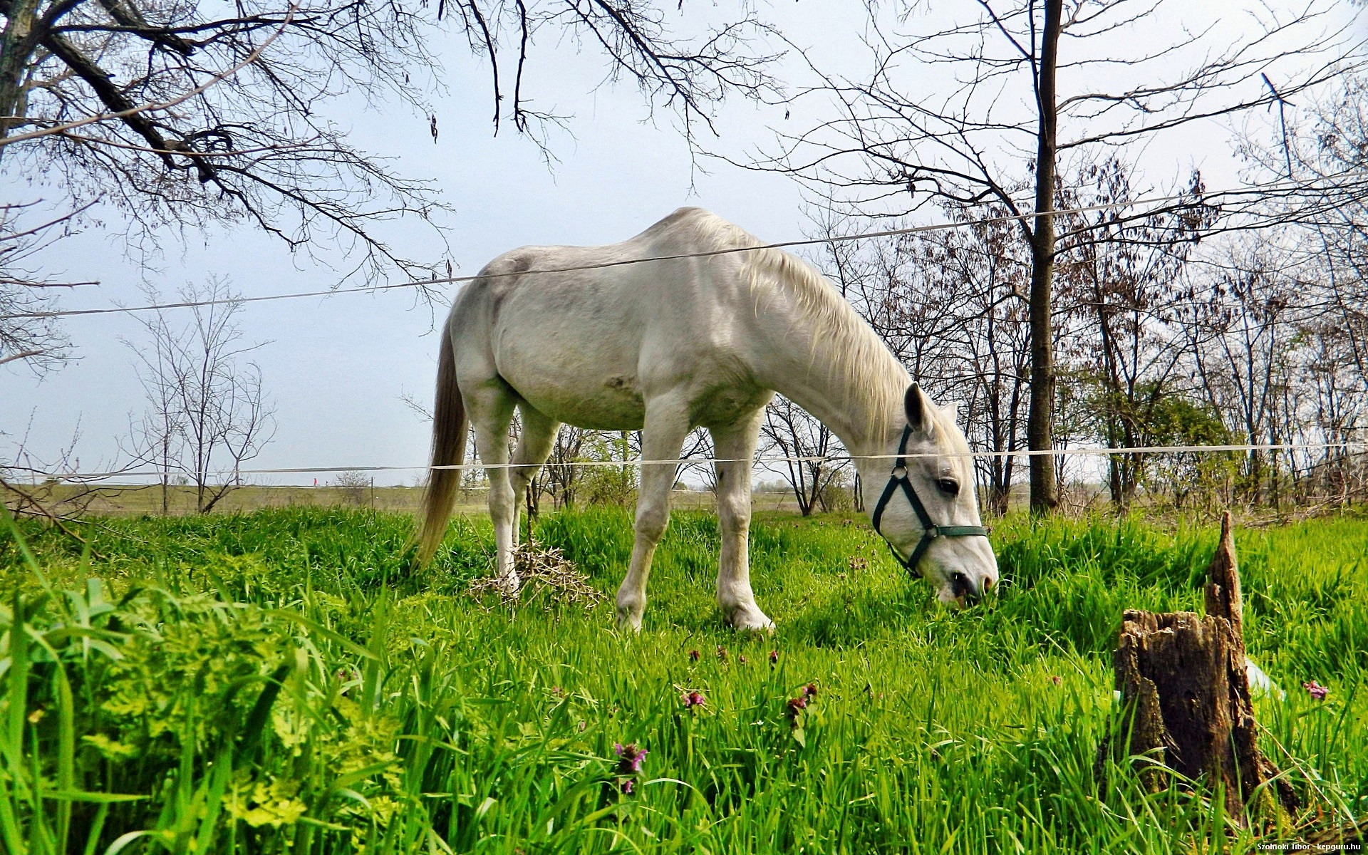 Edytor tapety: Biały, Koń, Łąka, Ogrodzenie