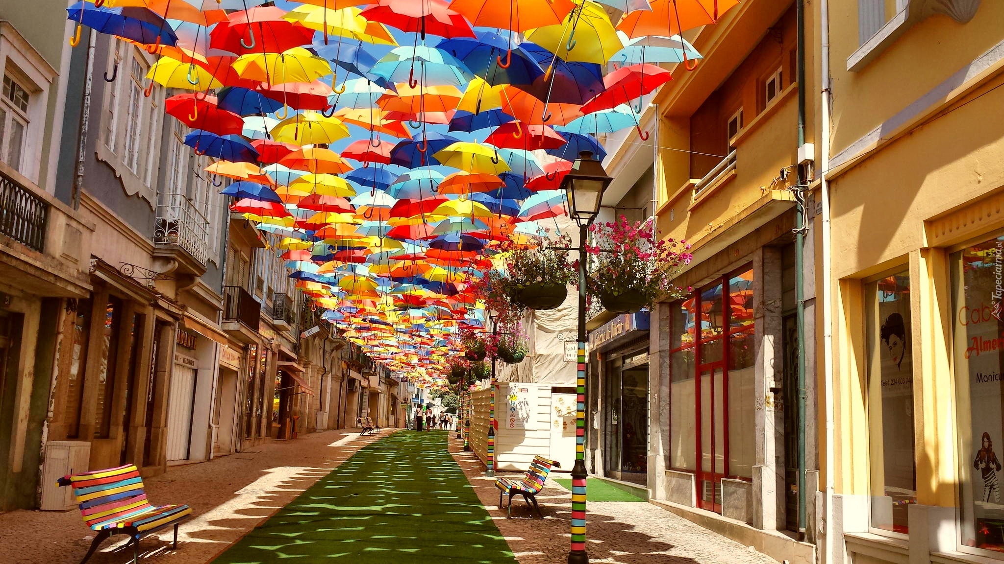 Edytor tapety: Miasto, Ulica, Kolorowe, Parasolki