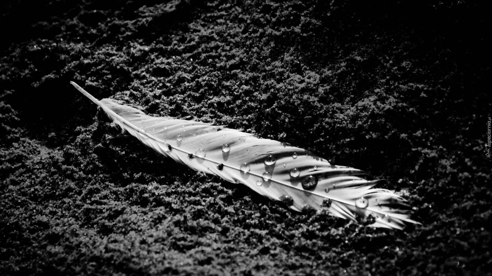 Edytor tapety: Białe, Pióro, Czarny, Piasek, Krople, Wody