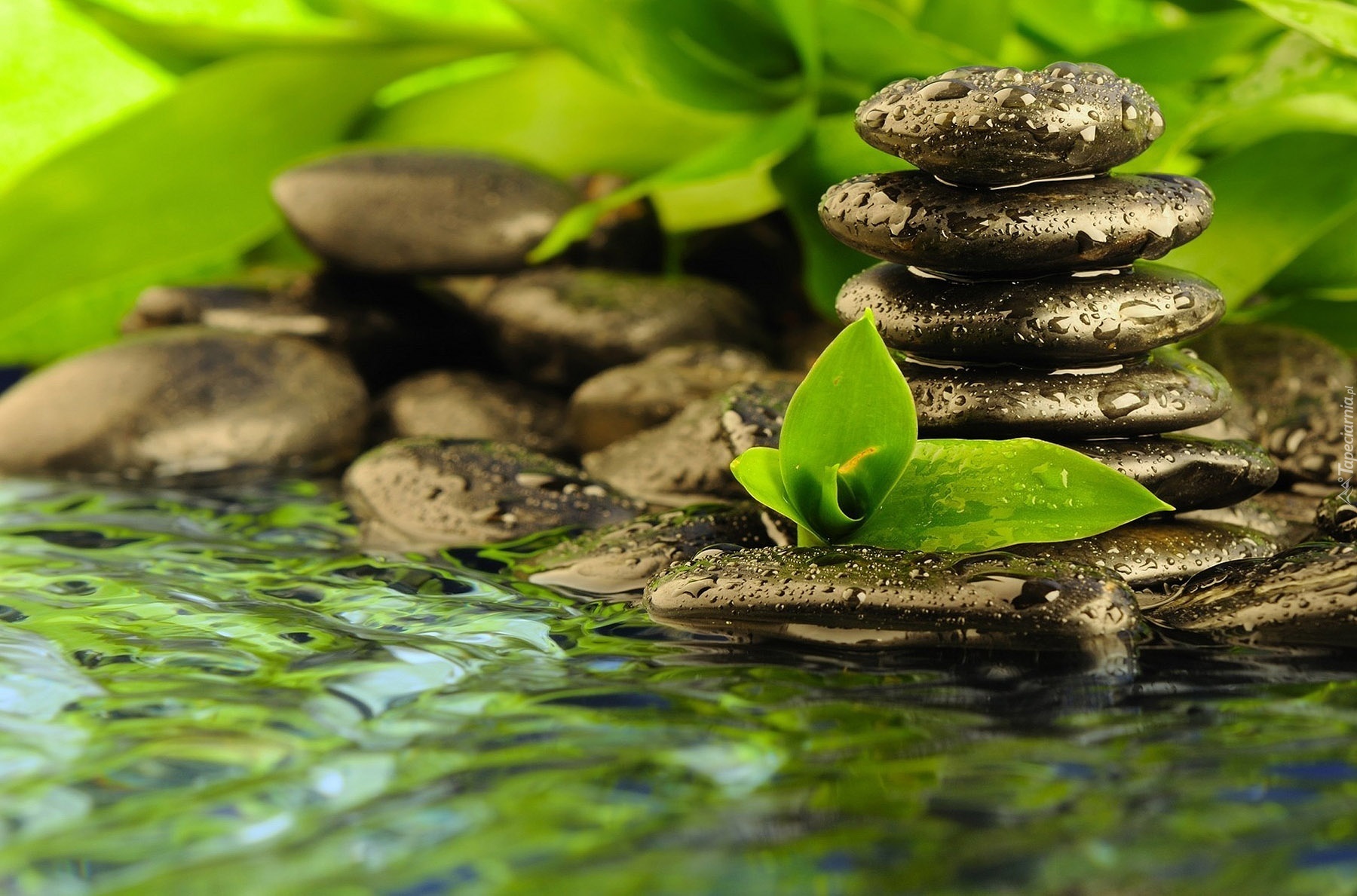 Edytor tapety: Czarne, Kamienie, Woda, Roślina