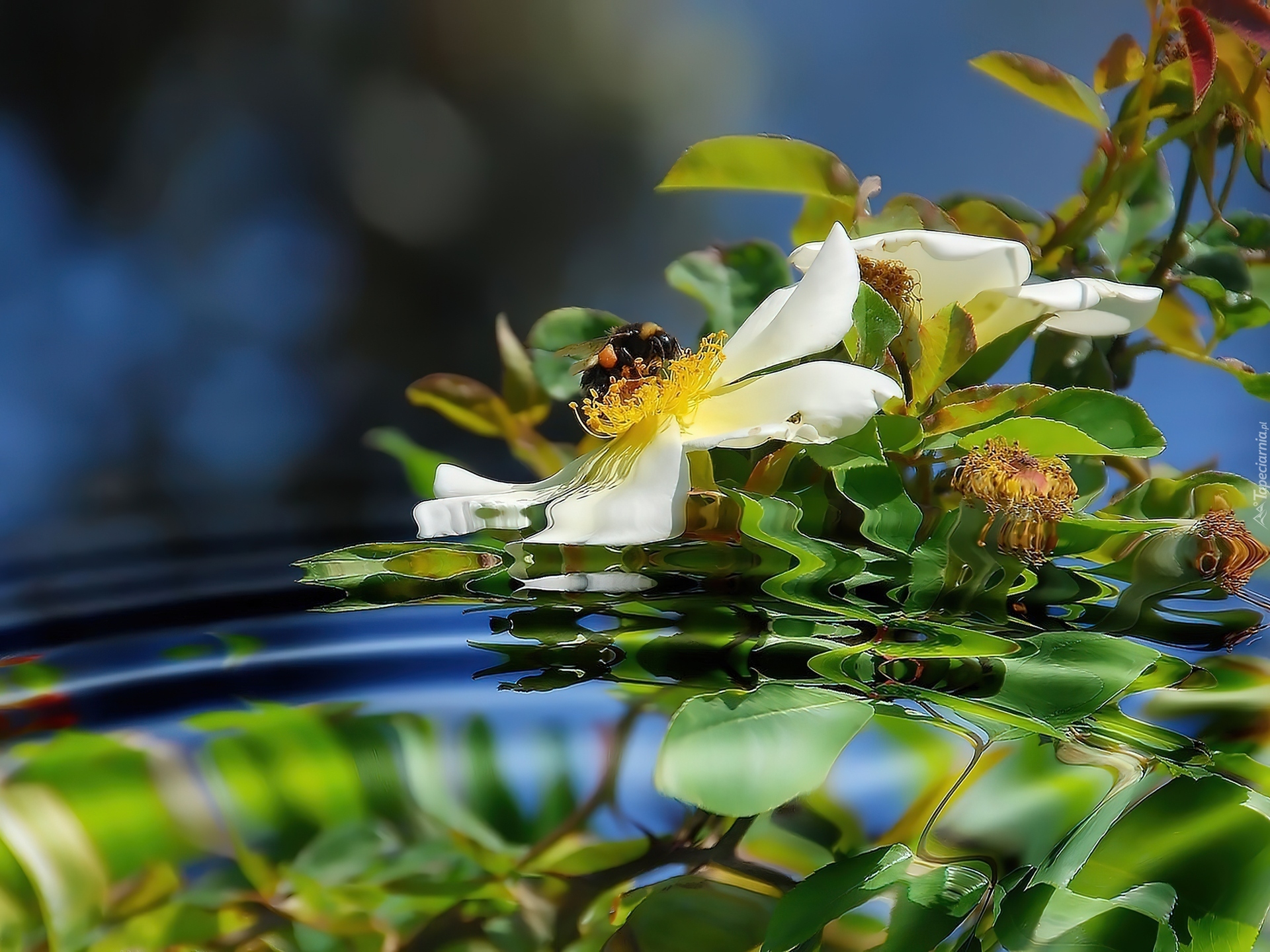 Edytor tapety: Pszczoła, Kwiaty, Woda