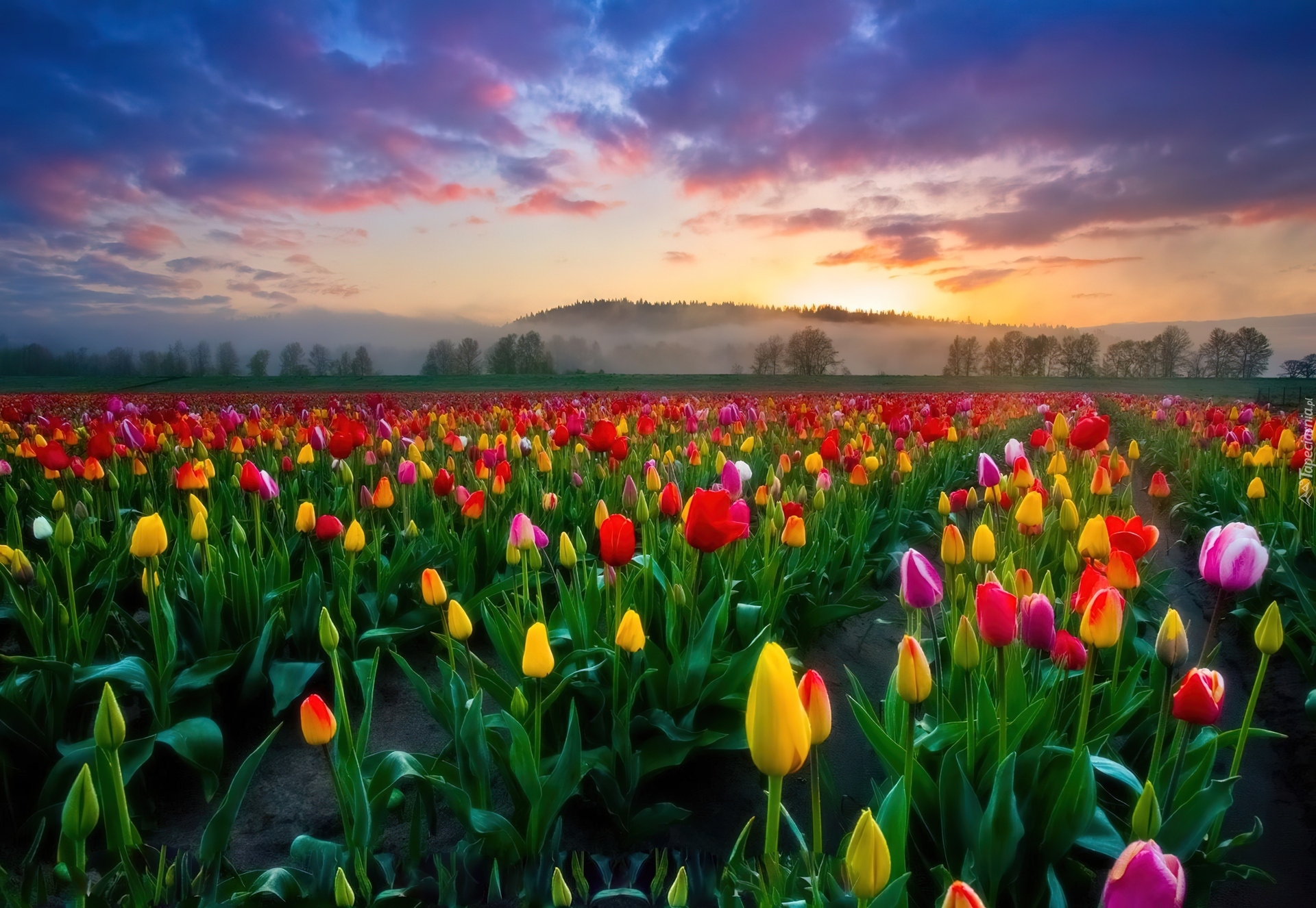 Edytor tapety: Tulipany, Zachód, Słońca