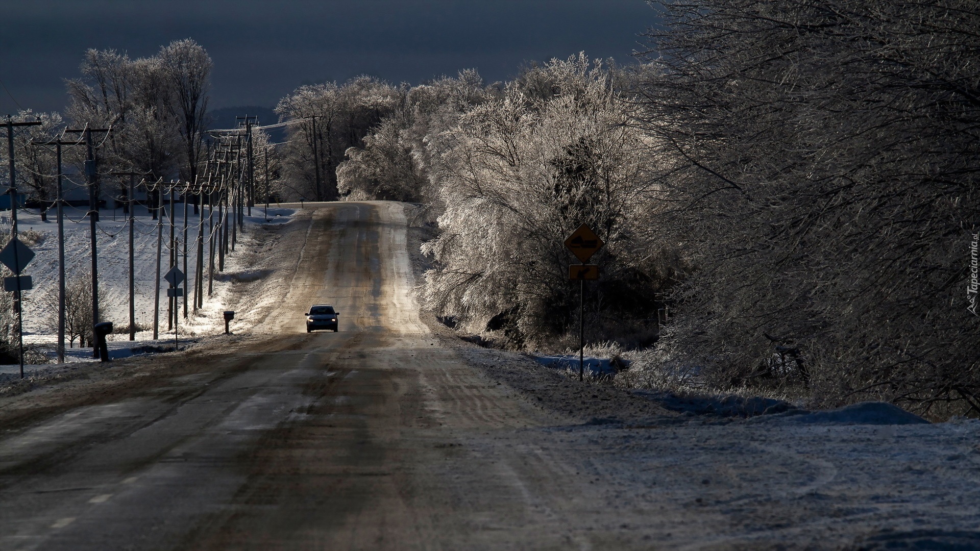 Edytor tapety: Droga, Samochód, Drzewa, Zima