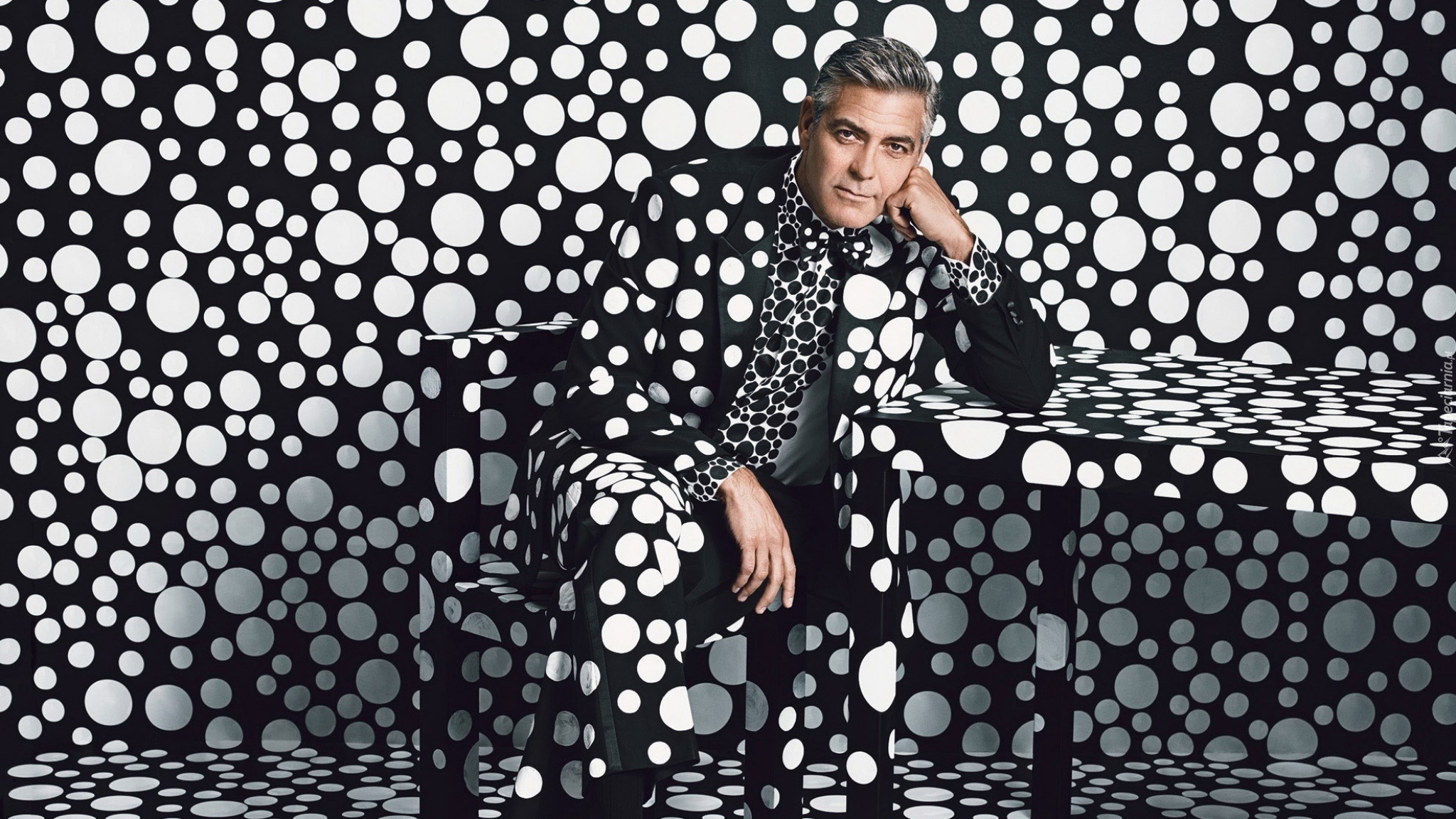 Edytor tapety: George Clooney, Strój, Tło, Grochy