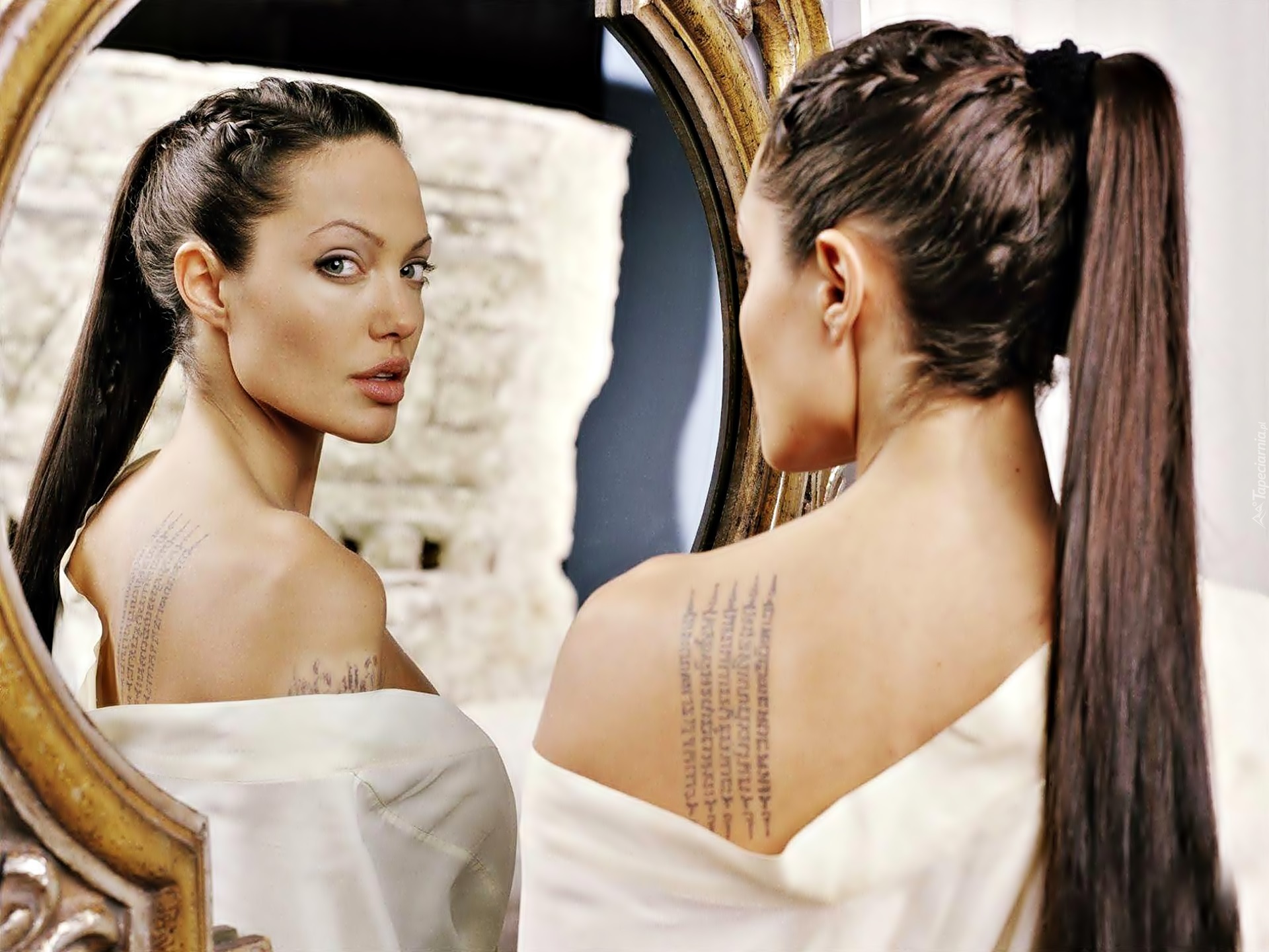 Edytor tapety: Angelina Jolie, długie włosy, tatuaż
