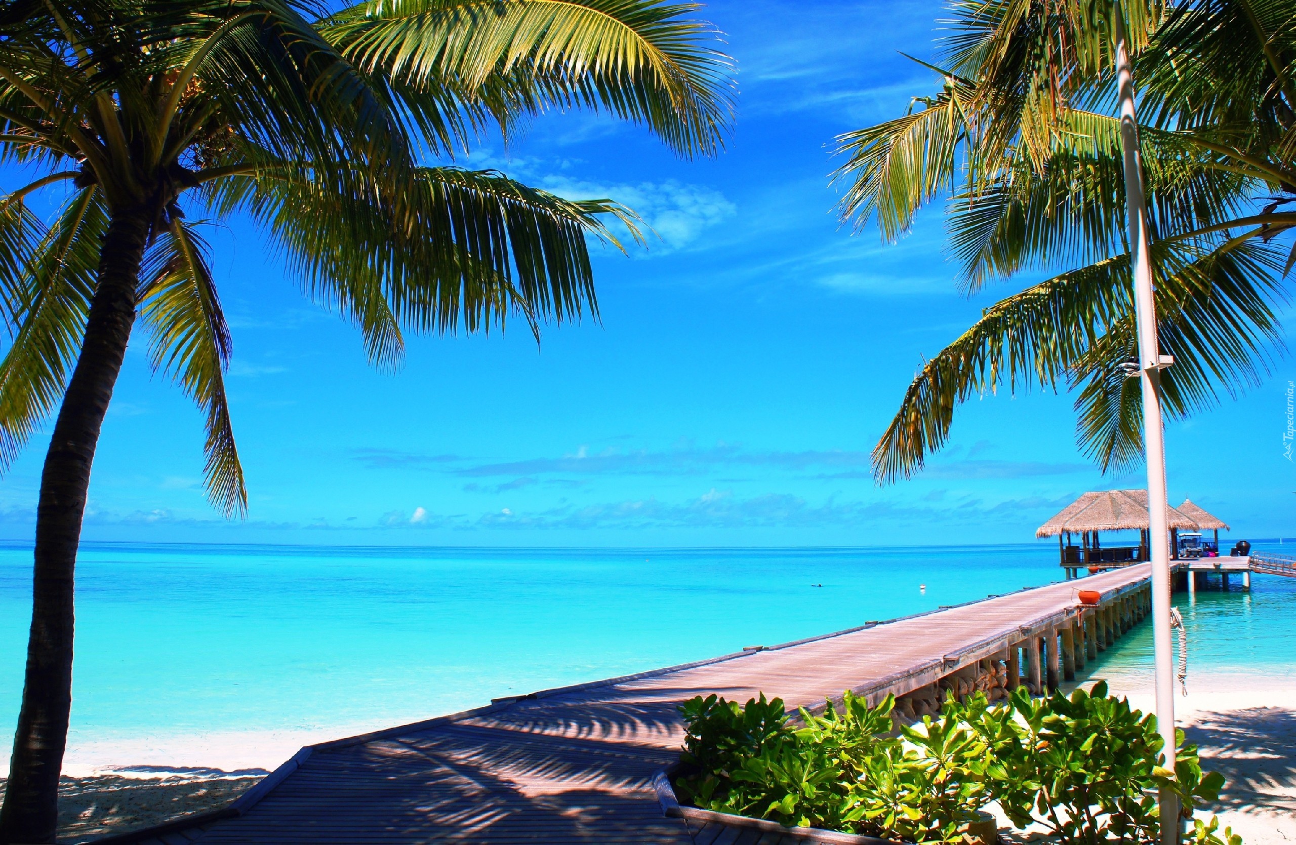 Edytor tapety: Morze, Molo, Palmy