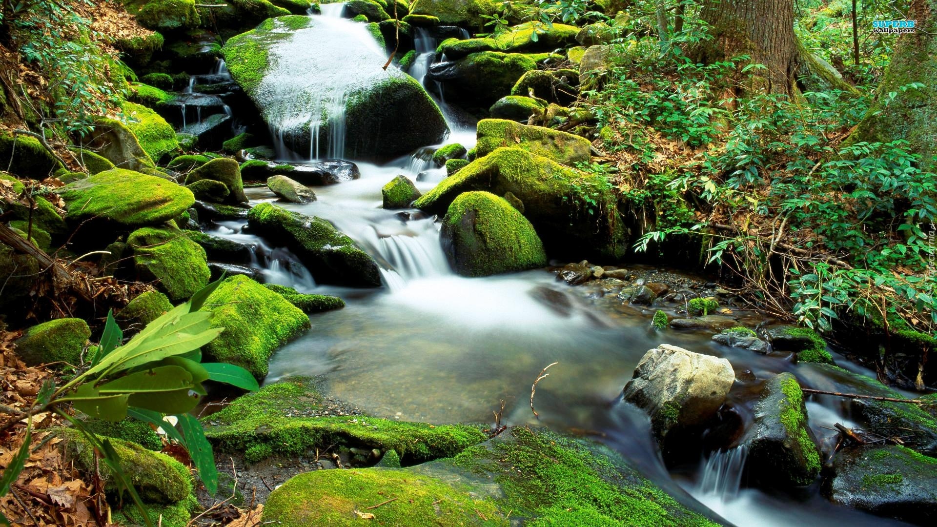 Edytor tapety: Las, Potok, Kamienie