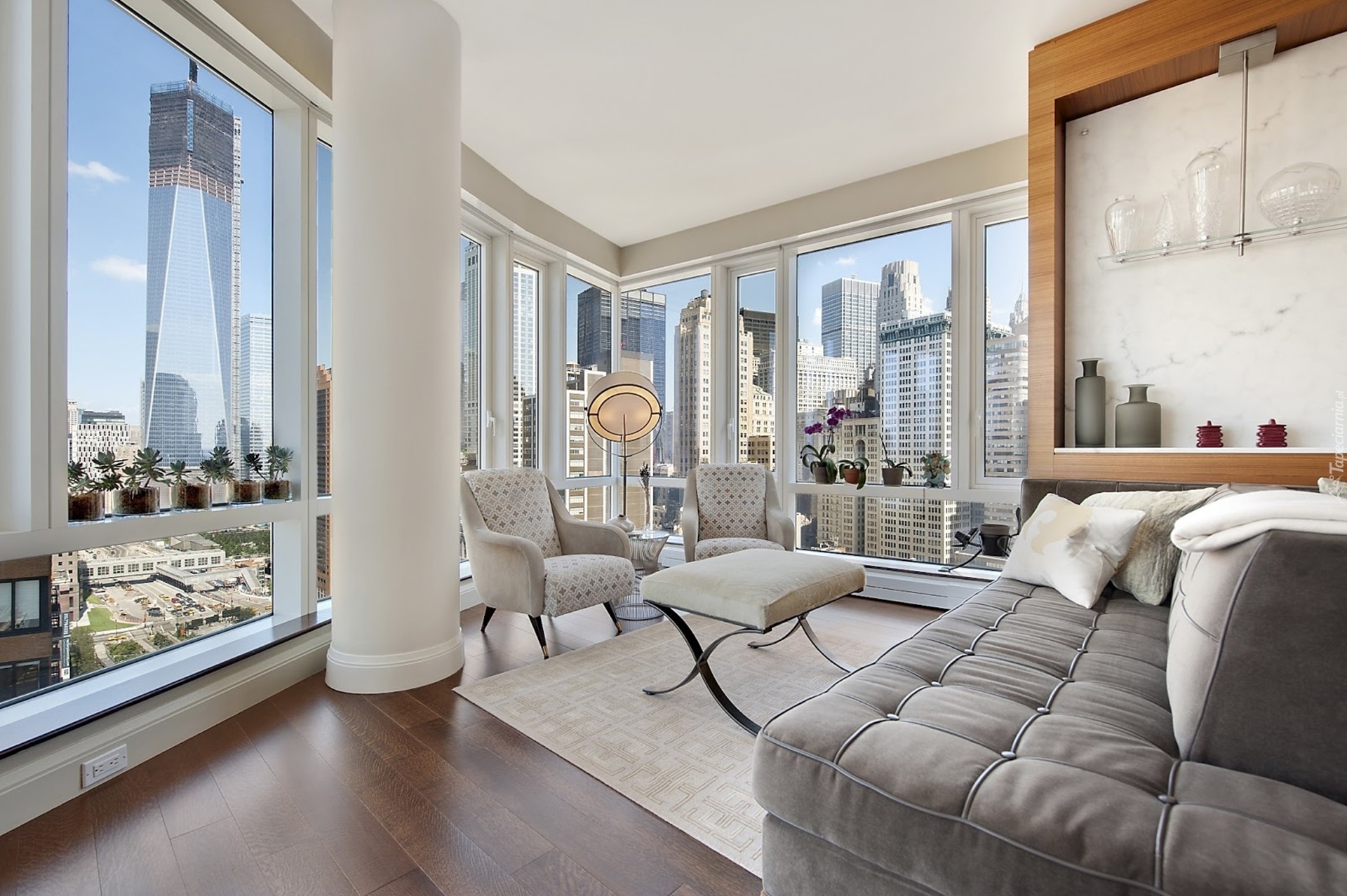 Edytor tapety: Pokój, Duże, Okna, Filar