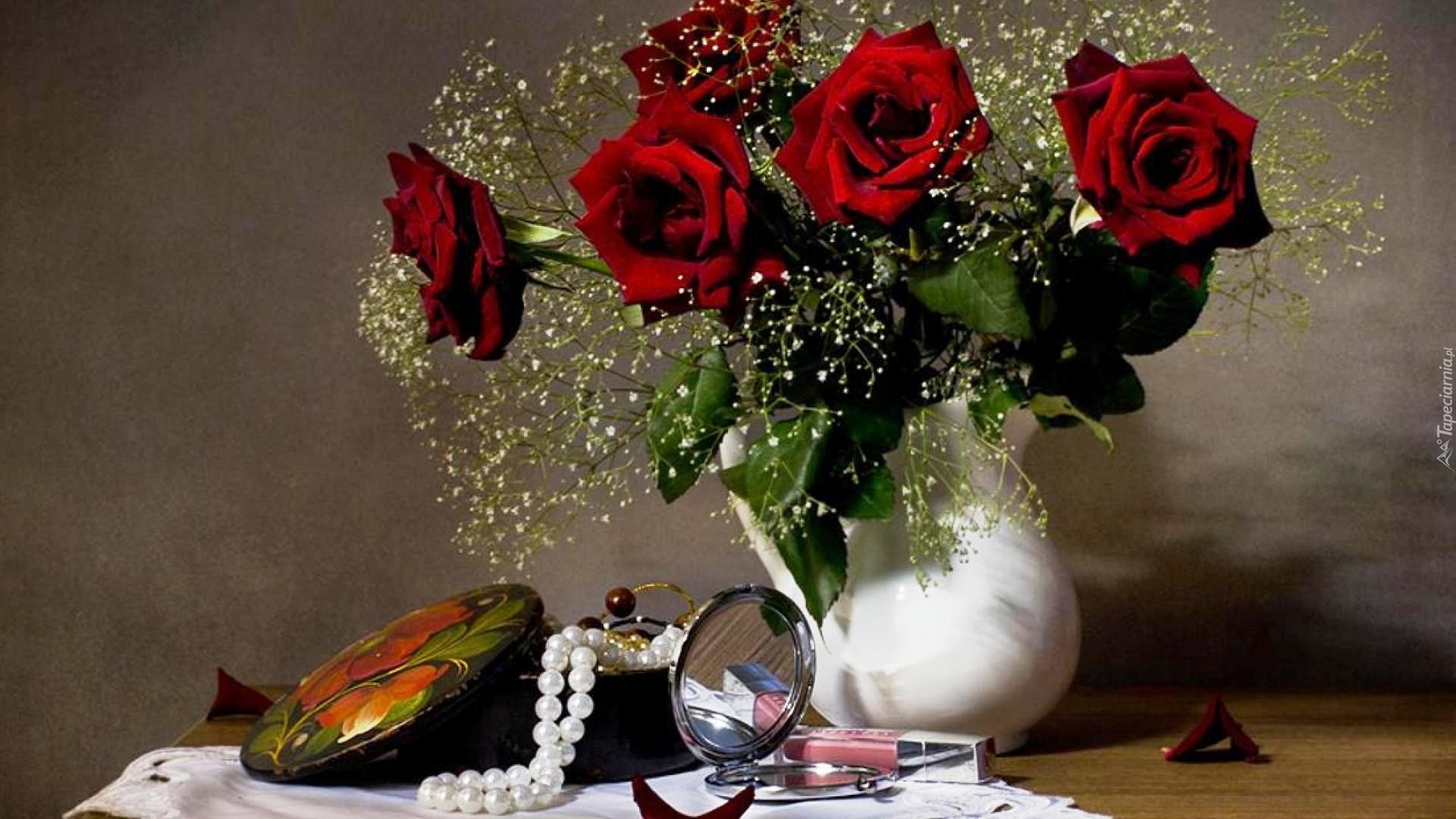 Edytor tapety: Róże, Flakon, Korale, Lusterko