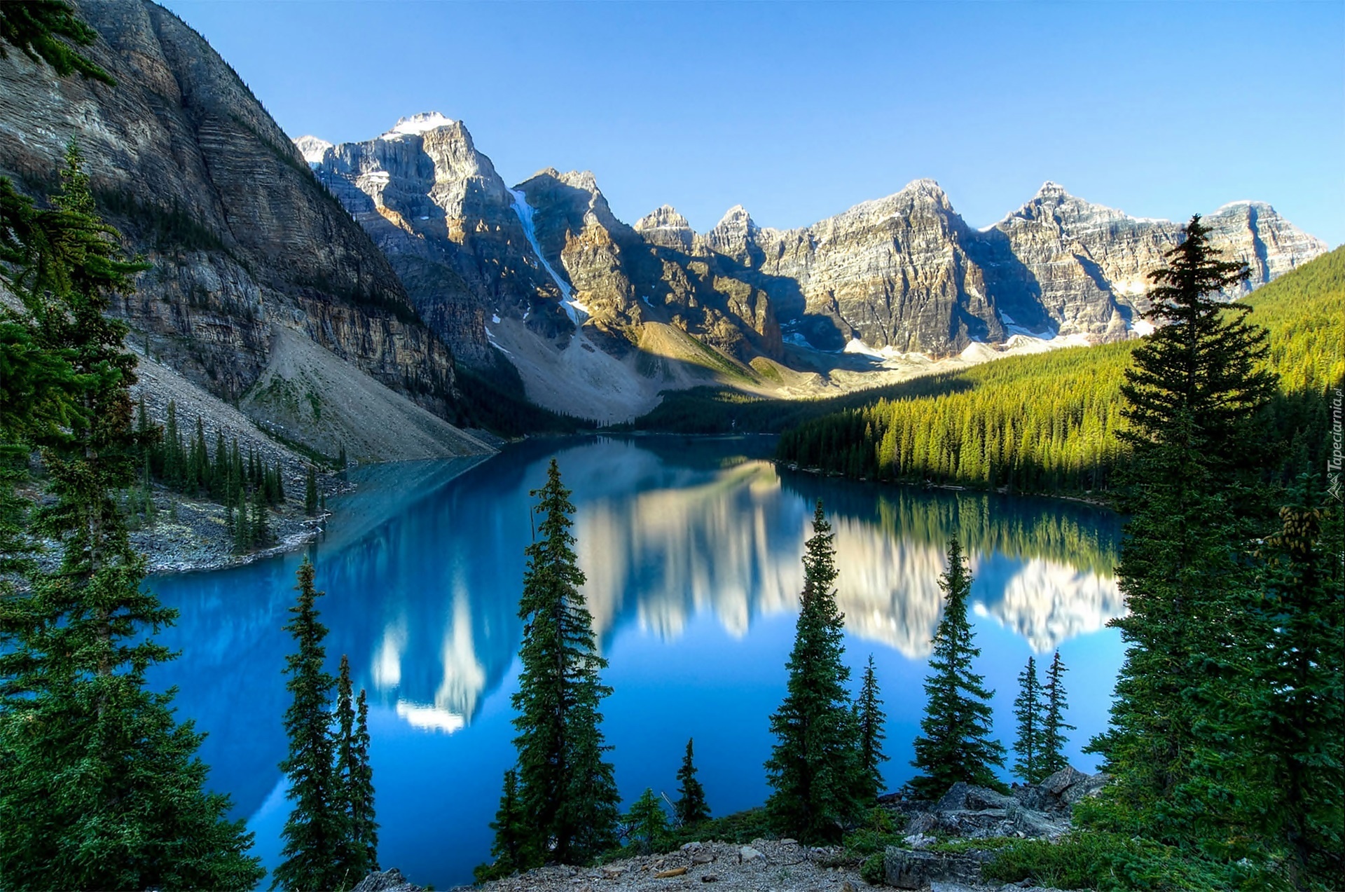 Edytor tapety: Kanada, Park Narodowy Banff, Góry, Lasy, Jezioro Moraine, Świerki, Odbicie