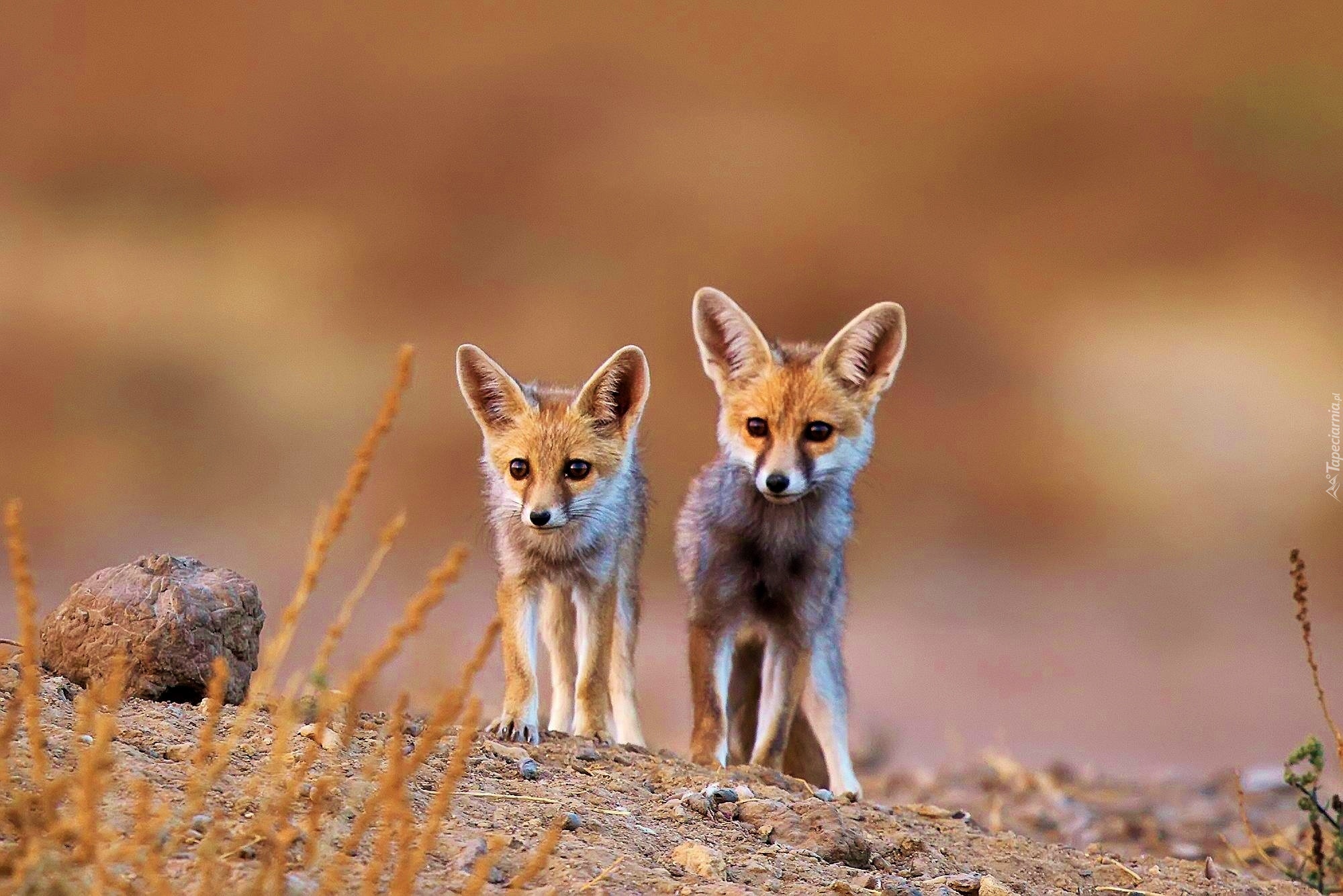 Edytor tapety: Fenki, Kamień, Źdźbła