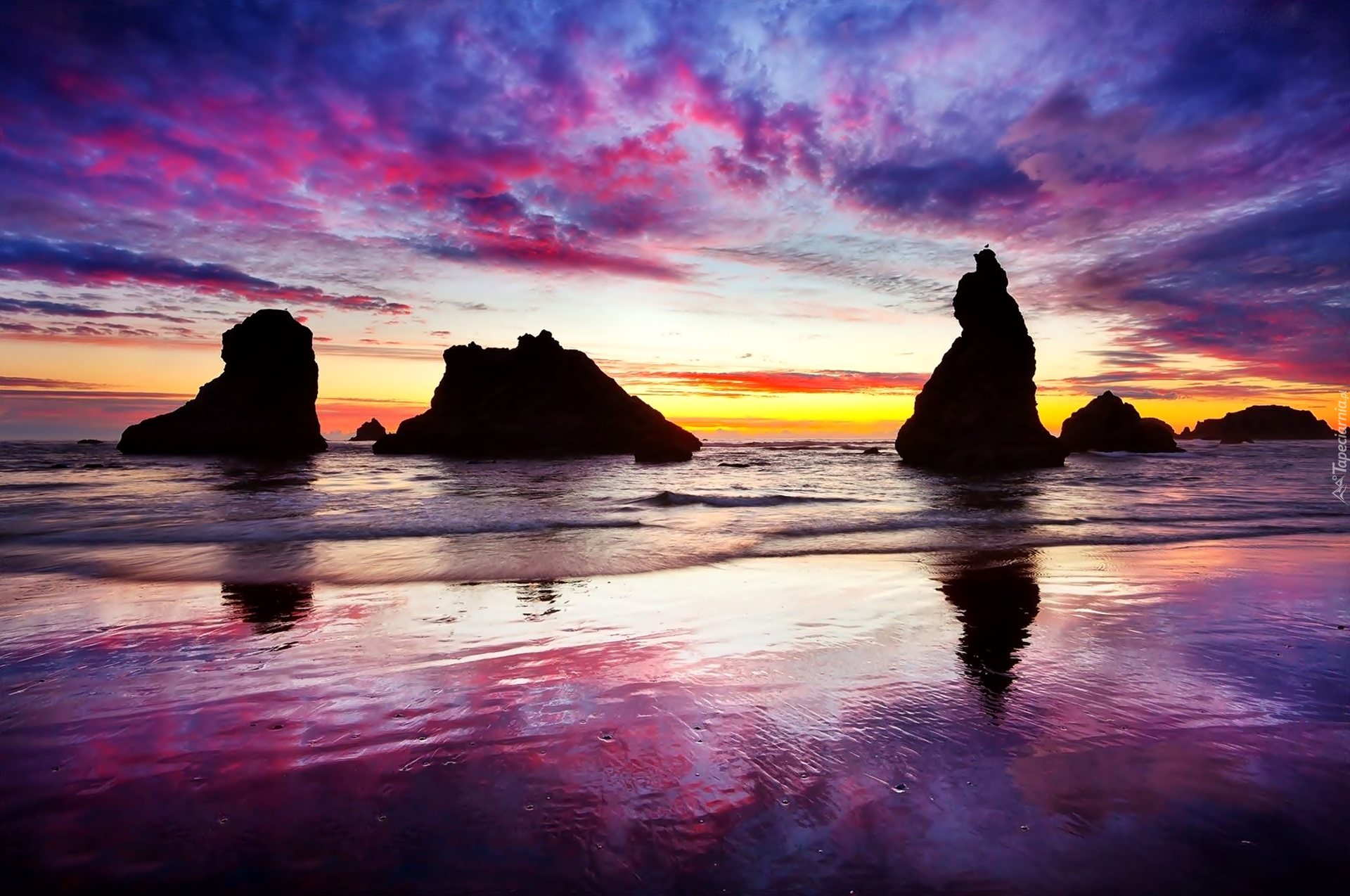 Edytor tapety: Zachód, Słońca, Skały, Morze