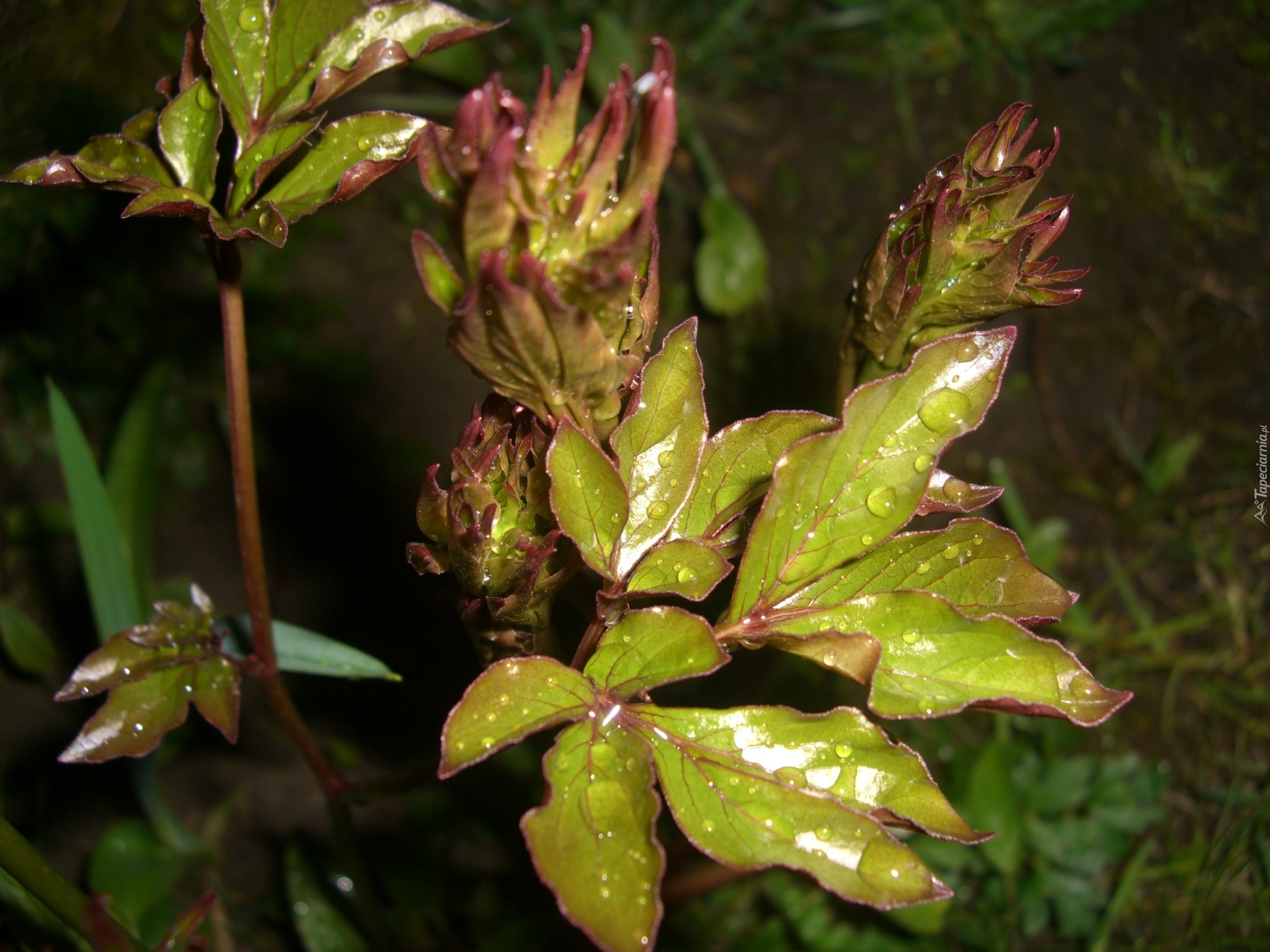 Edytor tapety: Piwonie, Liście, Kwiaty, Krople