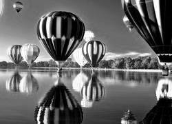 Edytor tapety: Drzewa, Rzeka, Kolorowe, Balony, Odbicie