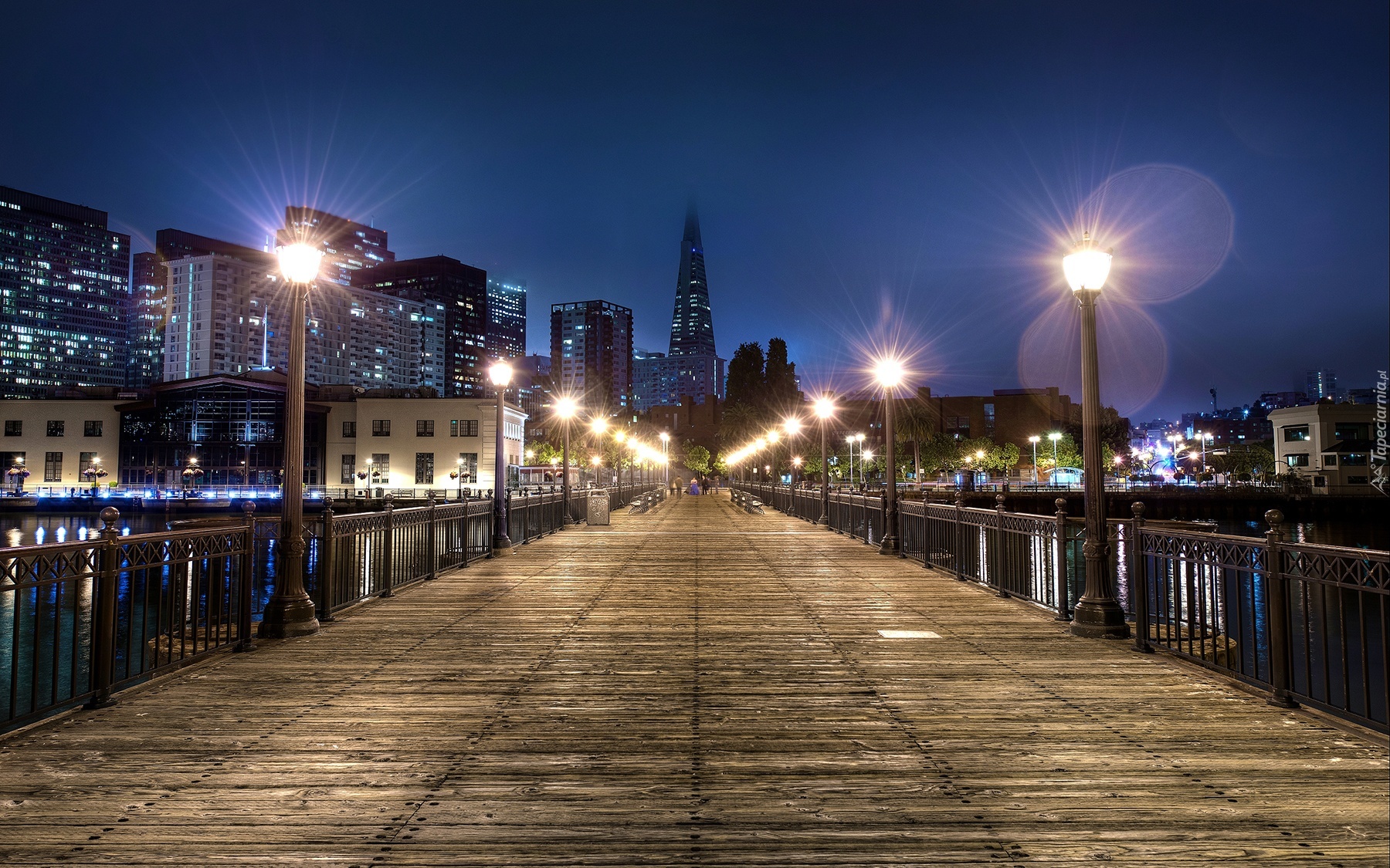 Edytor tapety: Miasto, Domy, Promenada, Molo, Lampy