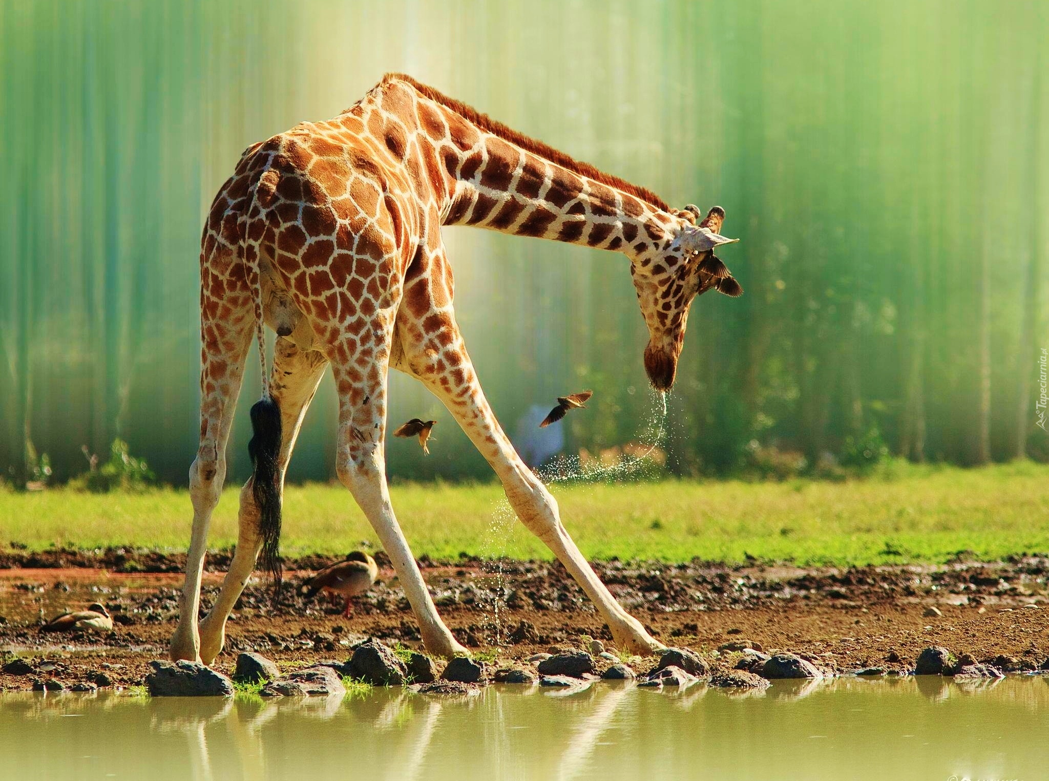 Edytor tapety: Żyrafa, Woda, Kamienie