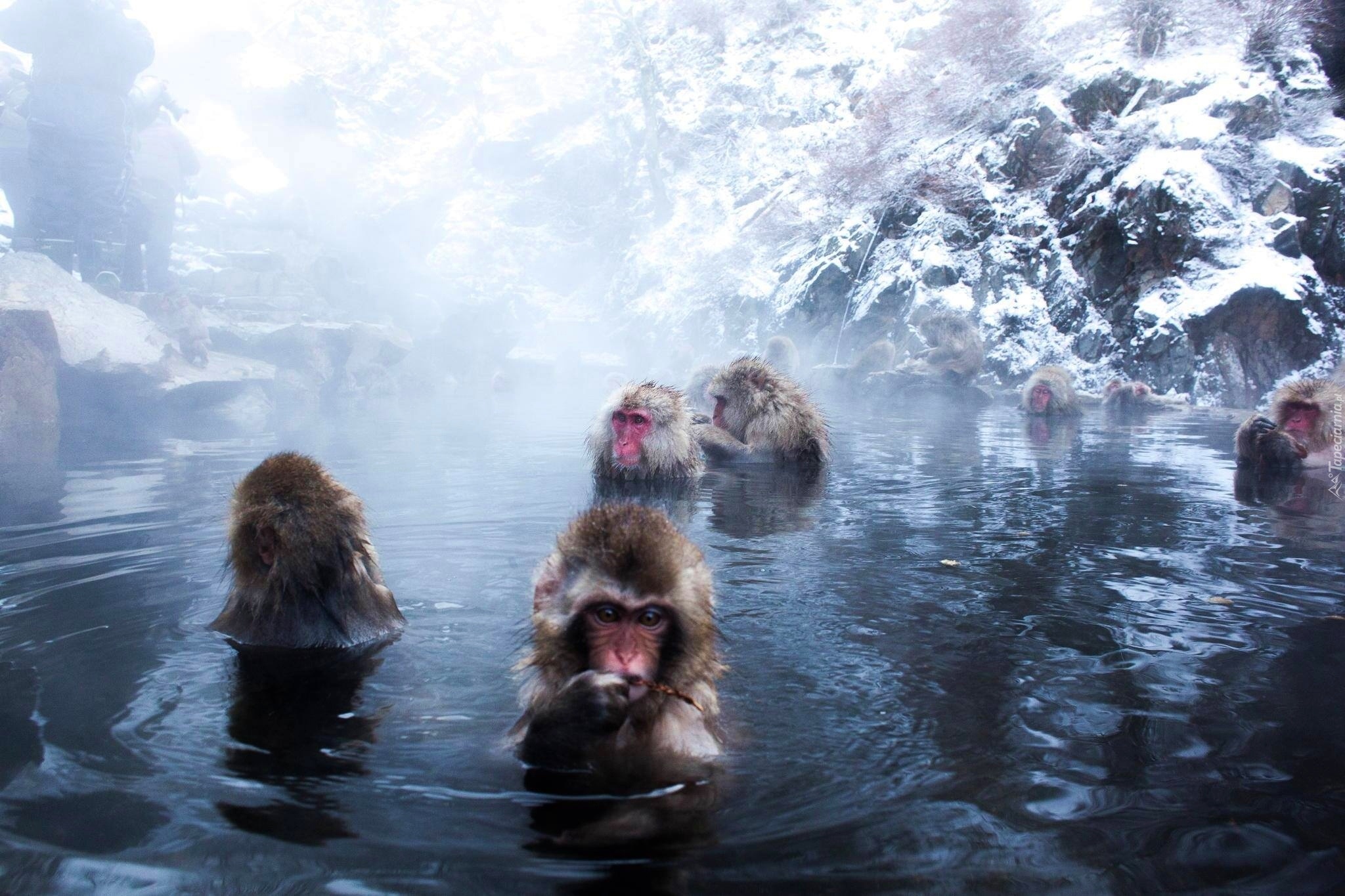 Edytor tapety: Małpki, Kąpiel, Woda, Skały