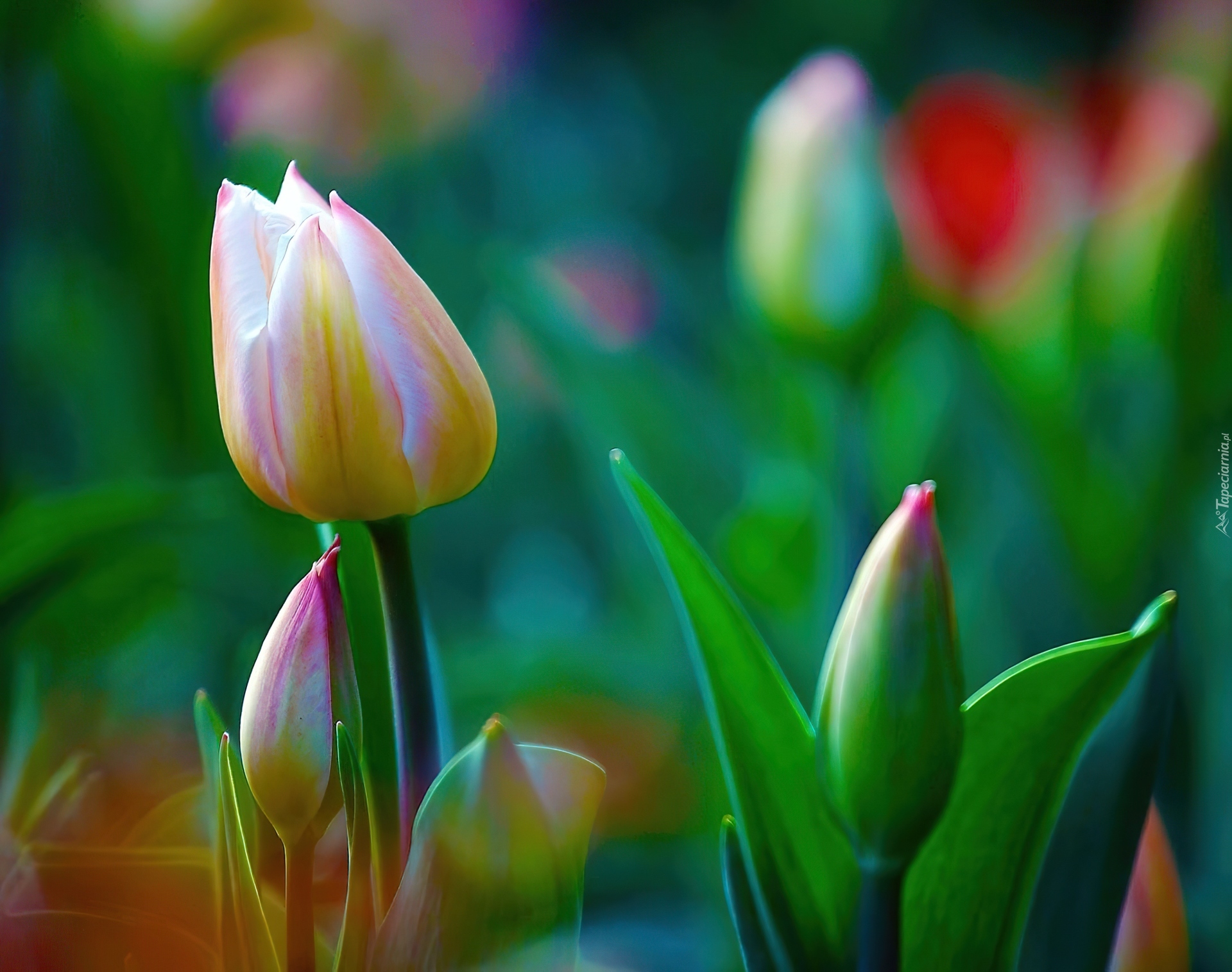 Edytor tapety: Tulipany, Pąki, Liście