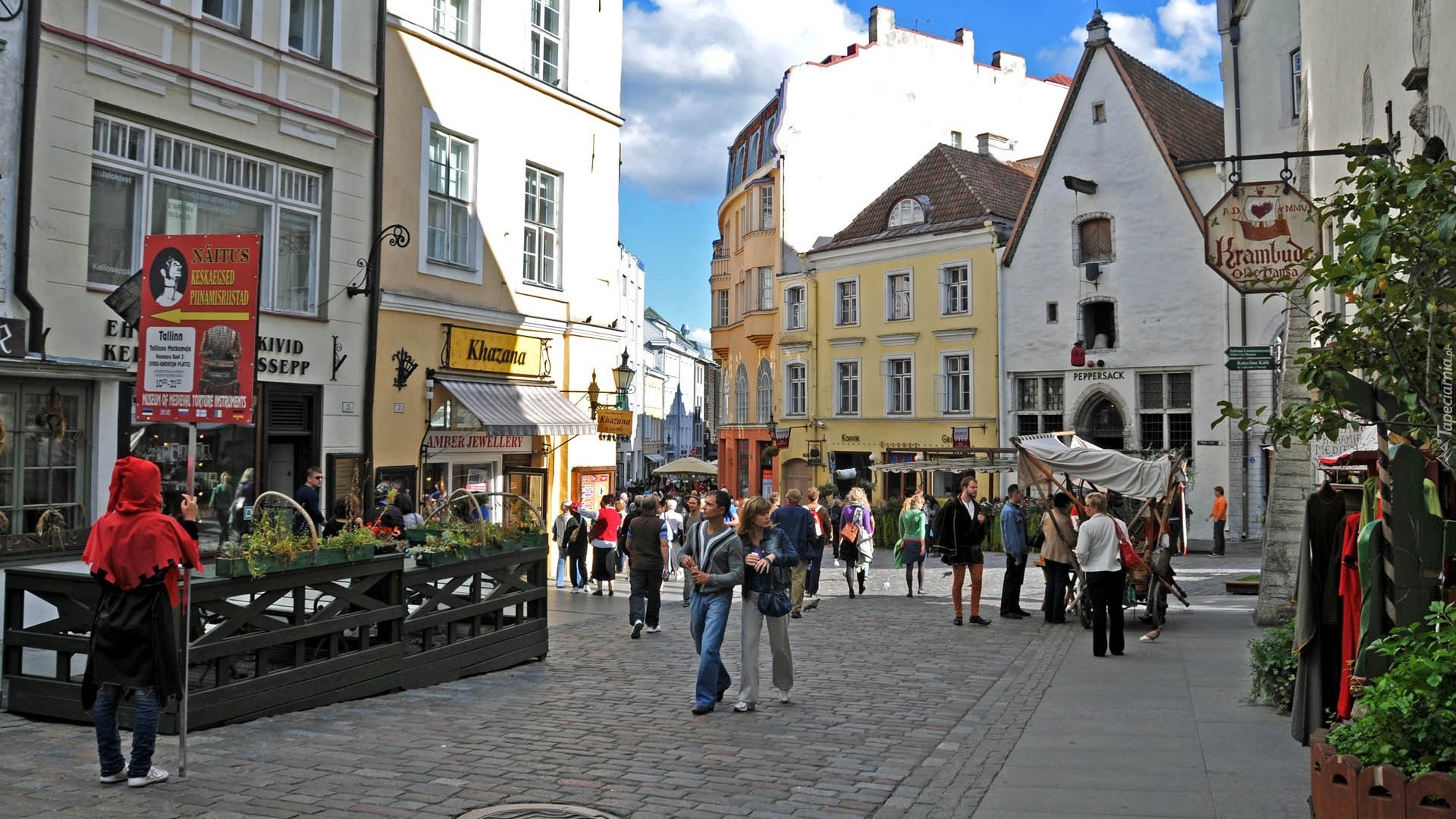 Edytor tapety: Estonia, Ulica, Domy, Ludzie