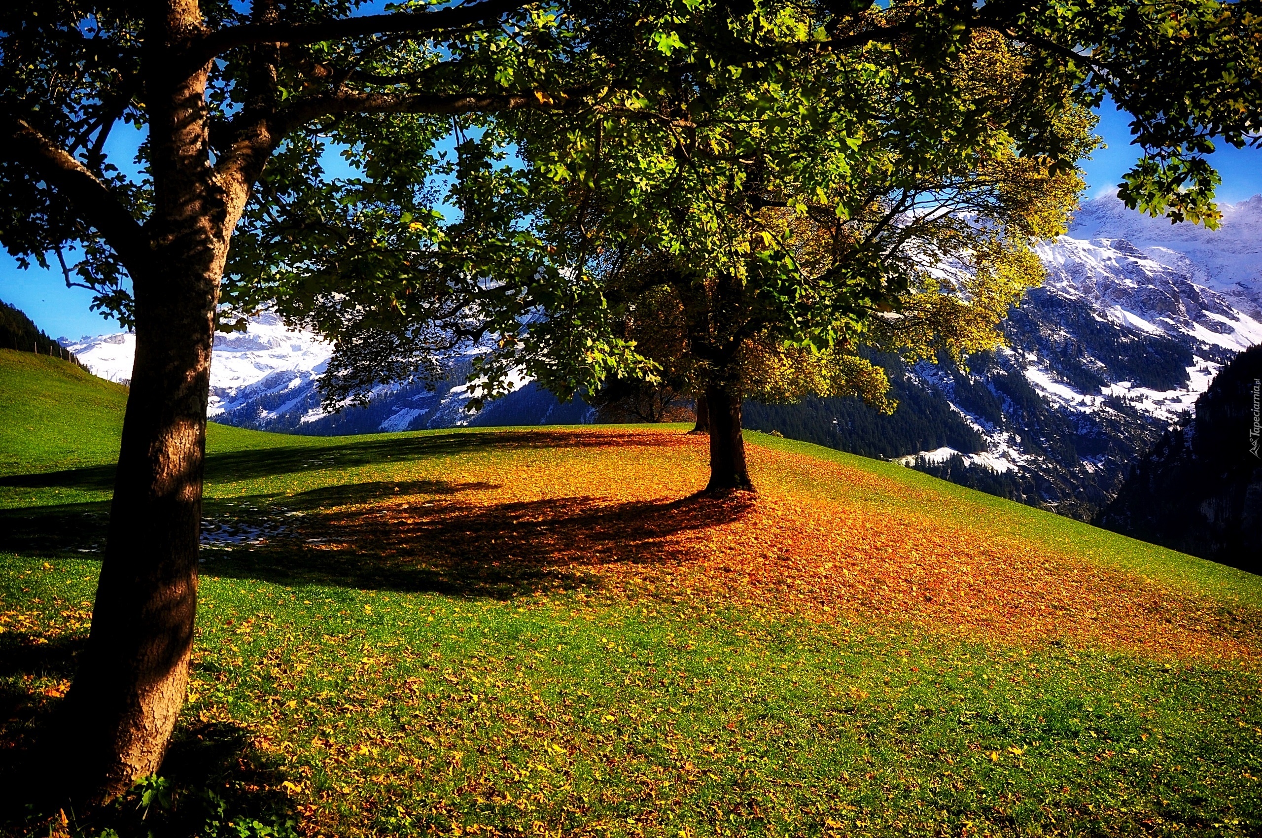 Edytor tapety: Góry, Polana, Drzewa, Jesień