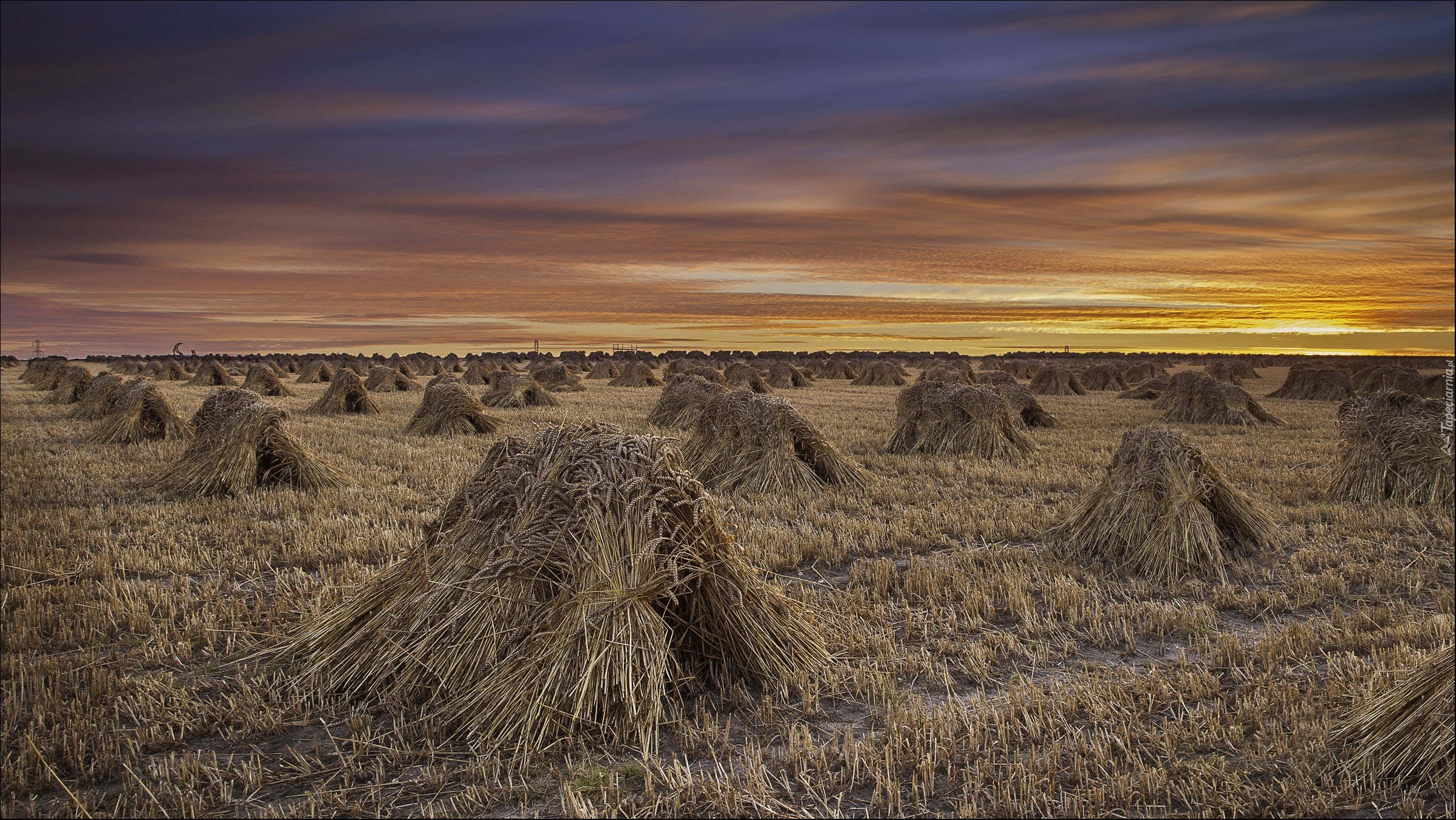 Edytor tapety: Pole, Snopy, Zachód, Słońca