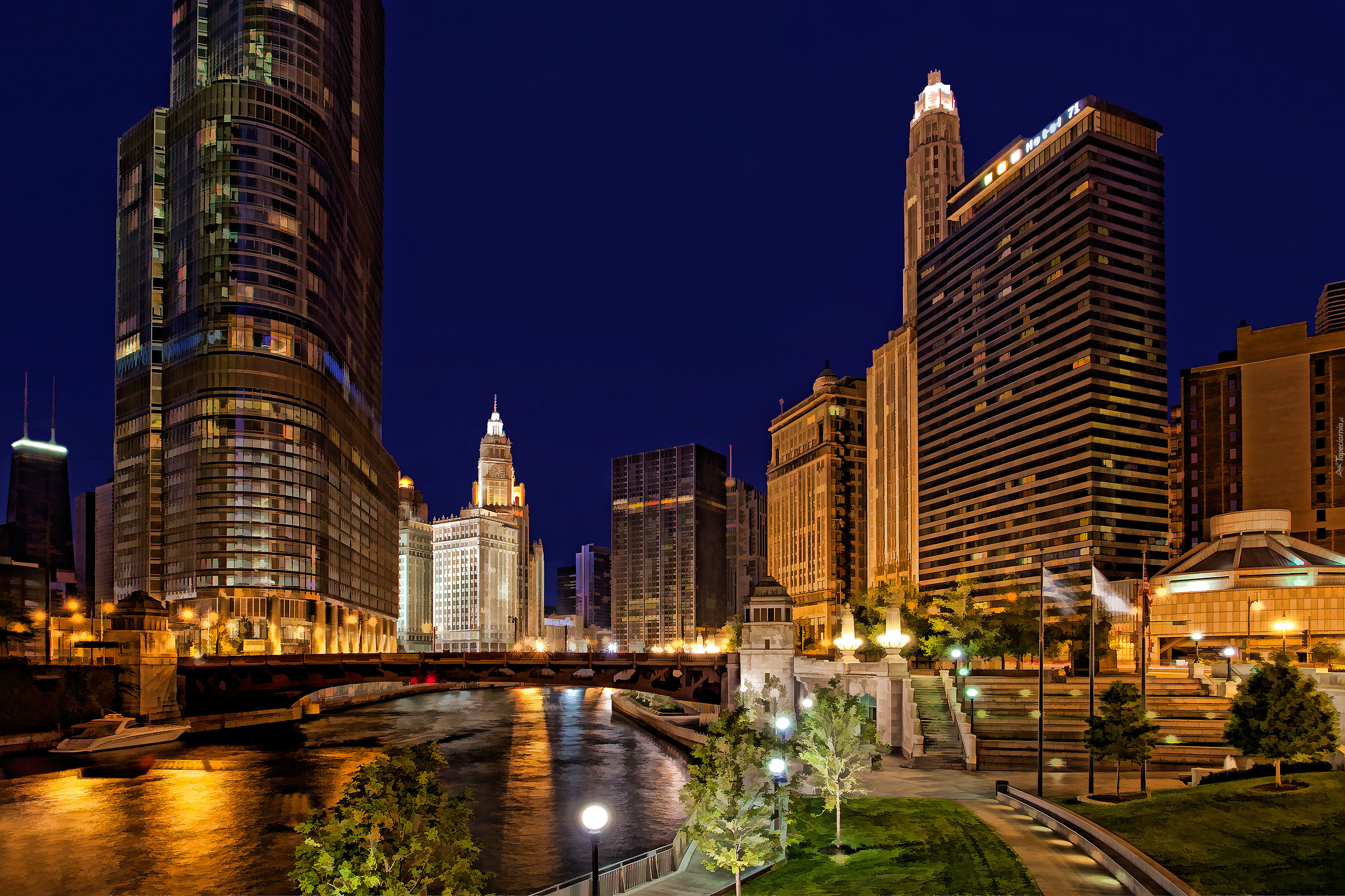 Edytor tapety: Chicago, Domy, Rzeka, Most