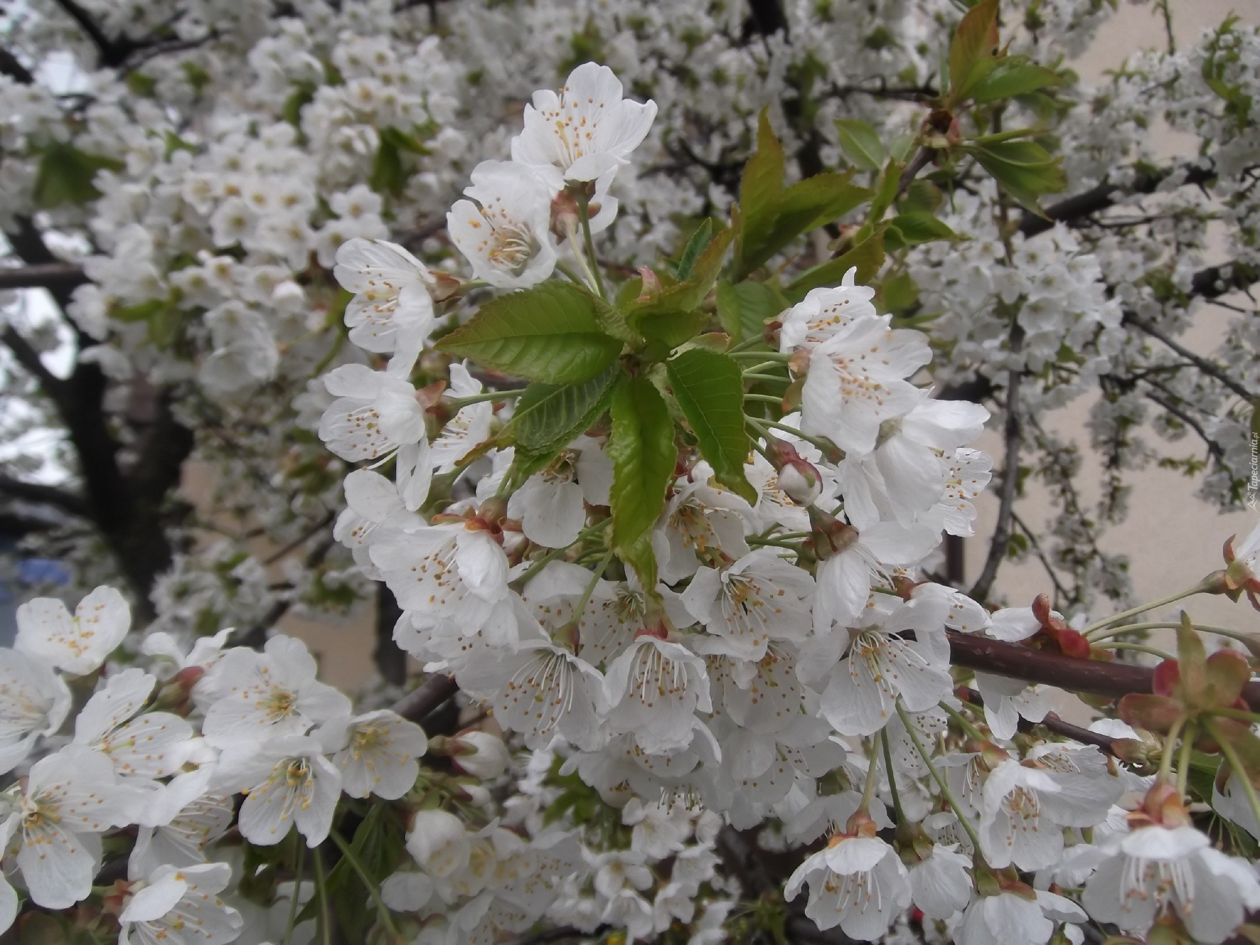 Edytor tapety: Piękne, Kwiaty, Czereśni, Listki