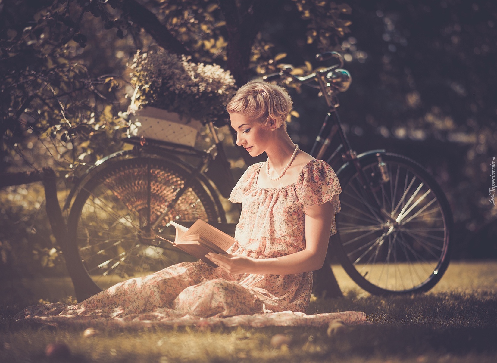 Edytor tapety: Retro, Kobieta, Książka, Rower