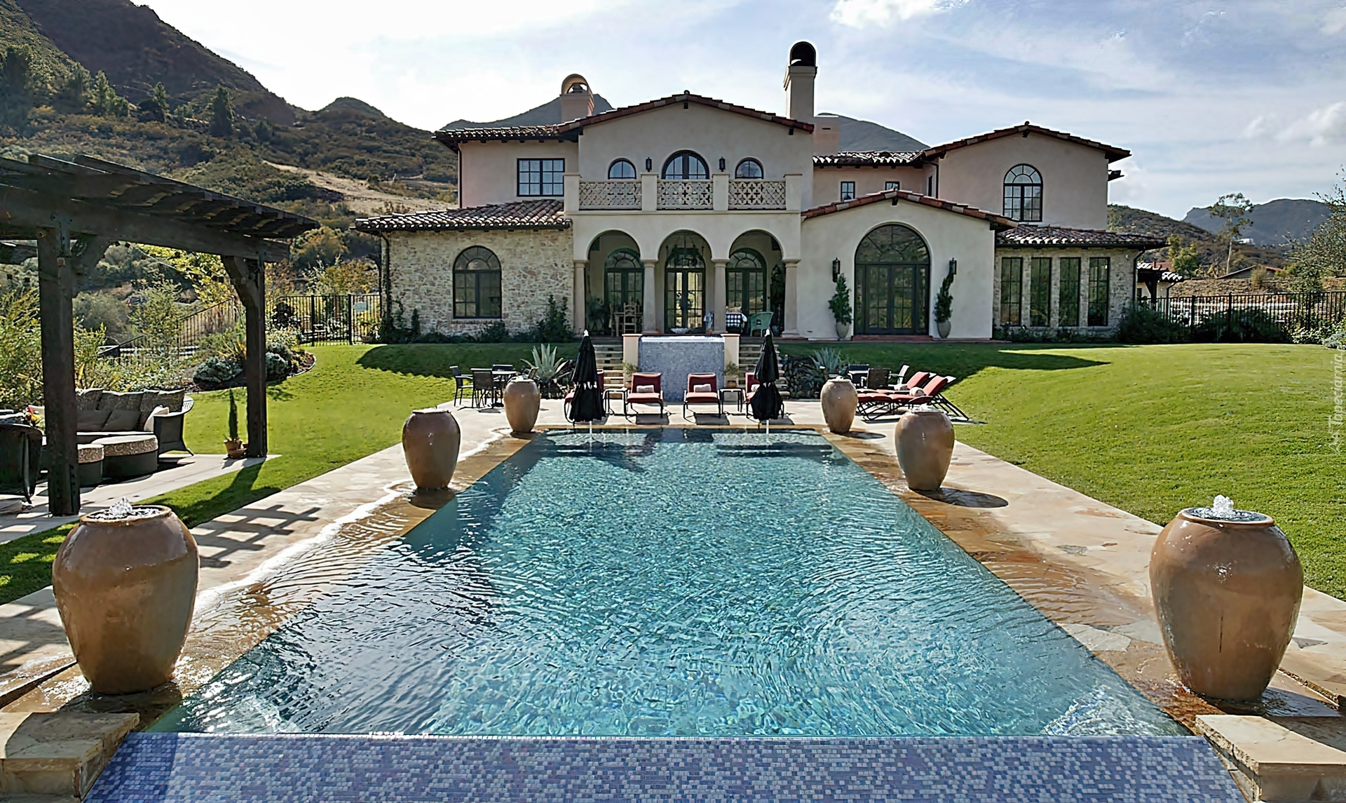 Edytor tapety: Dom, Ogród, Basen, Wzgórza