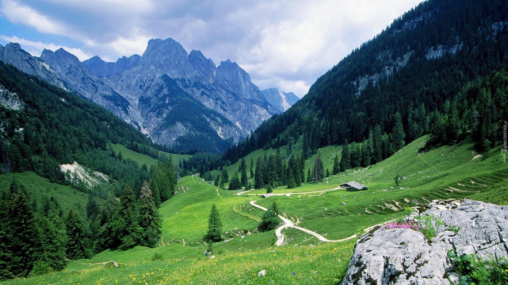 Edytor tapety: Bawaria, Góry, Lasy, Łąki, Dolina, Domy