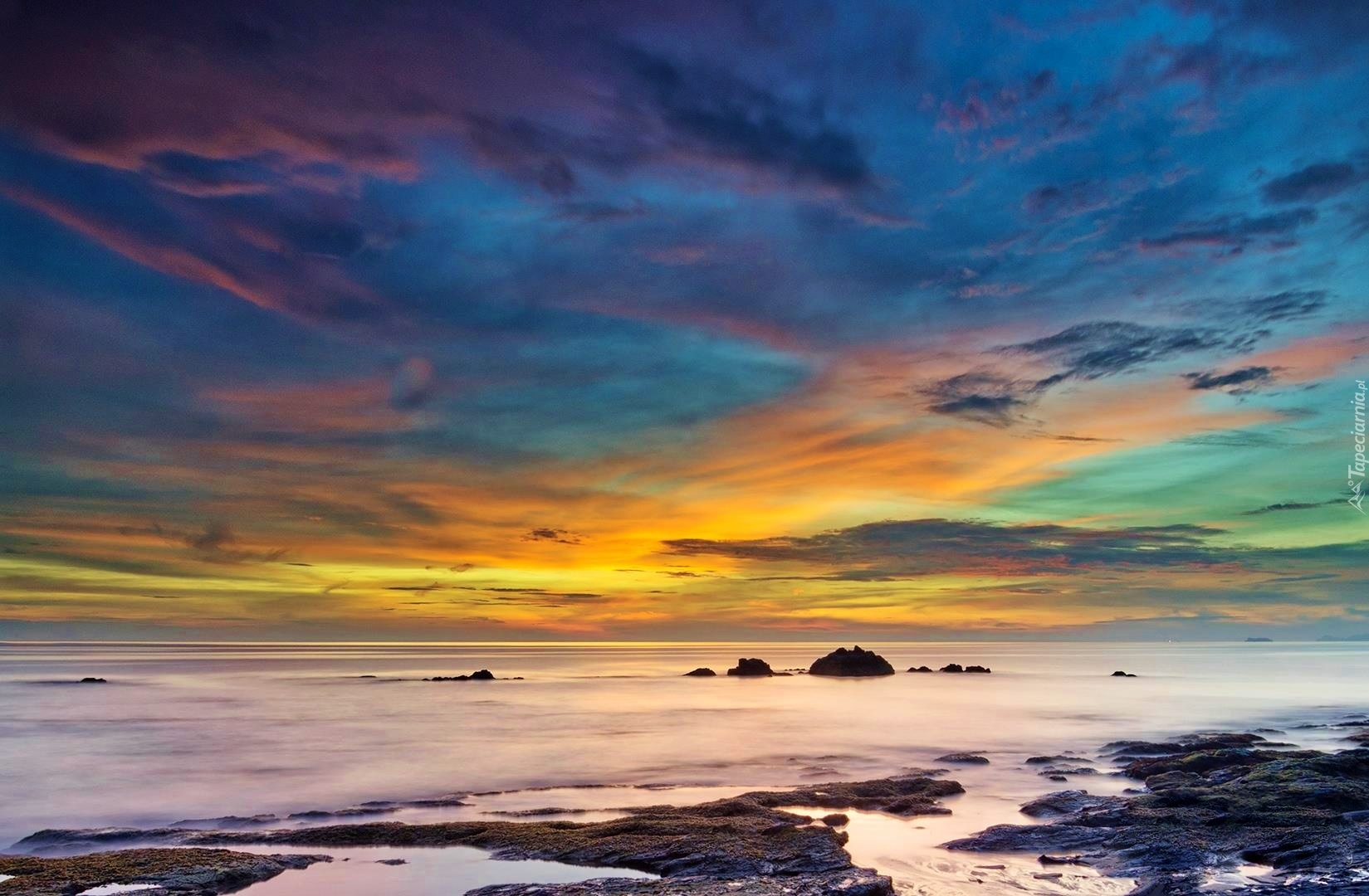 Edytor tapety: Zachód, Słońca, Morze, Skały