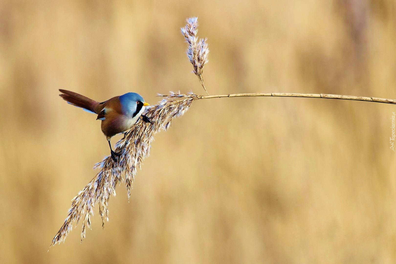 Edytor tapety: Kolorowy, Ptaszek, Wąsatka, Źdżbło, Trawy