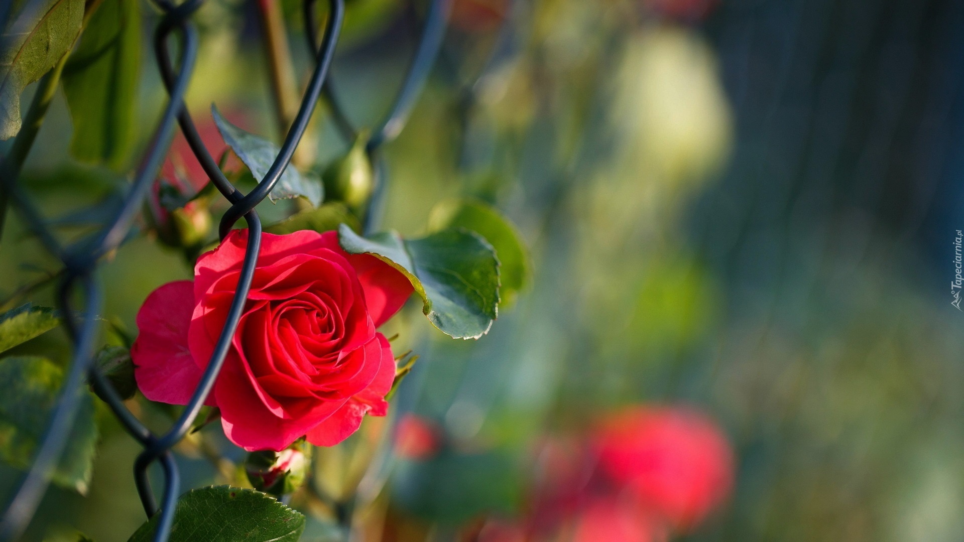 Edytor tapety: Czerwona, Róża, Ogrodzenie