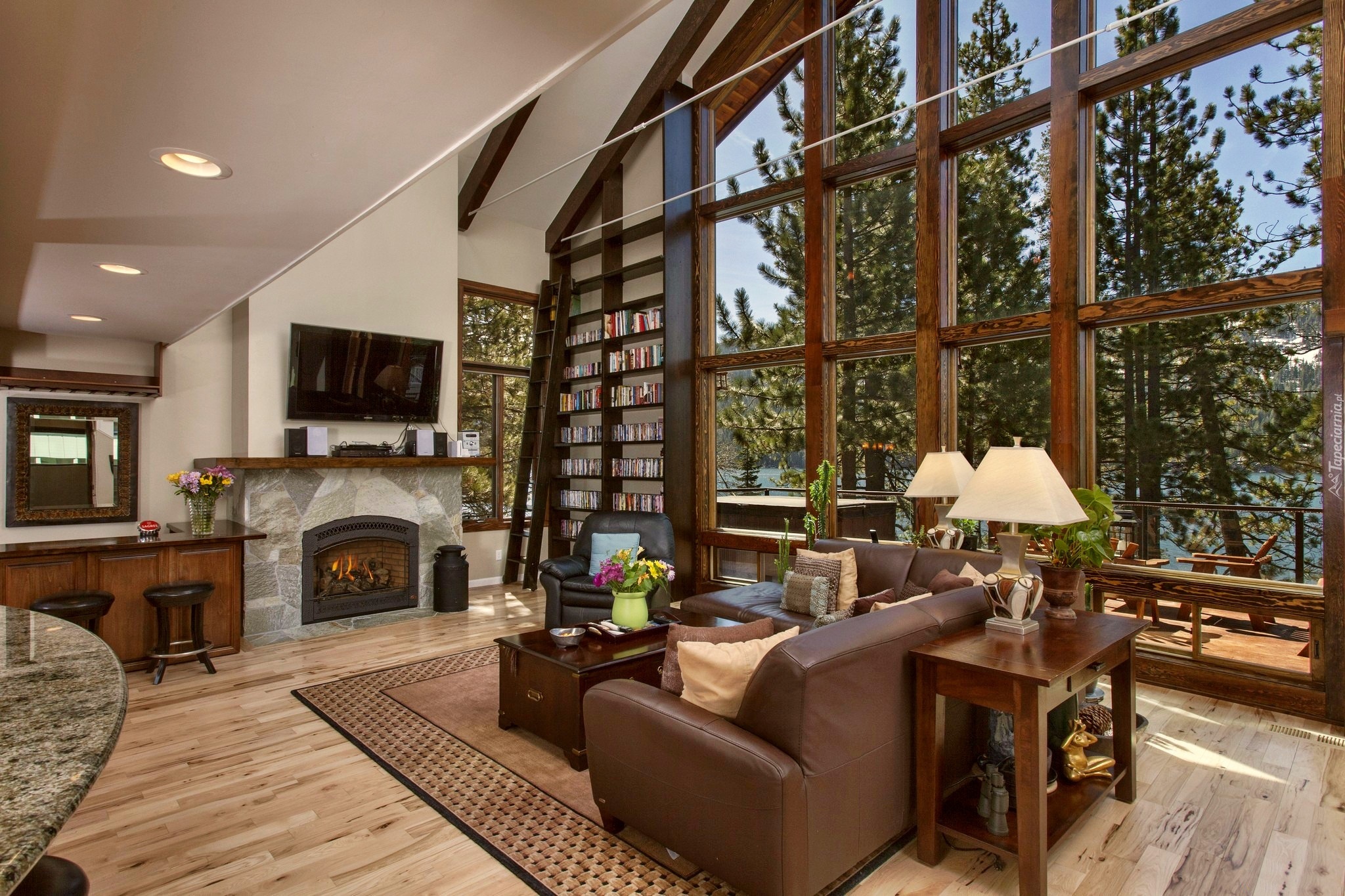 Edytor tapety: Salon, Widokowe, Okna, Kominek