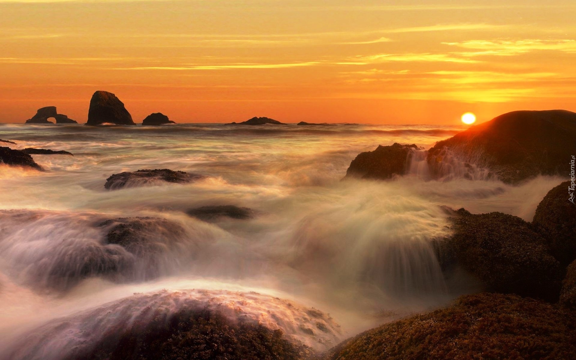 Edytor tapety: Morze, Skały, Zachód Słońca